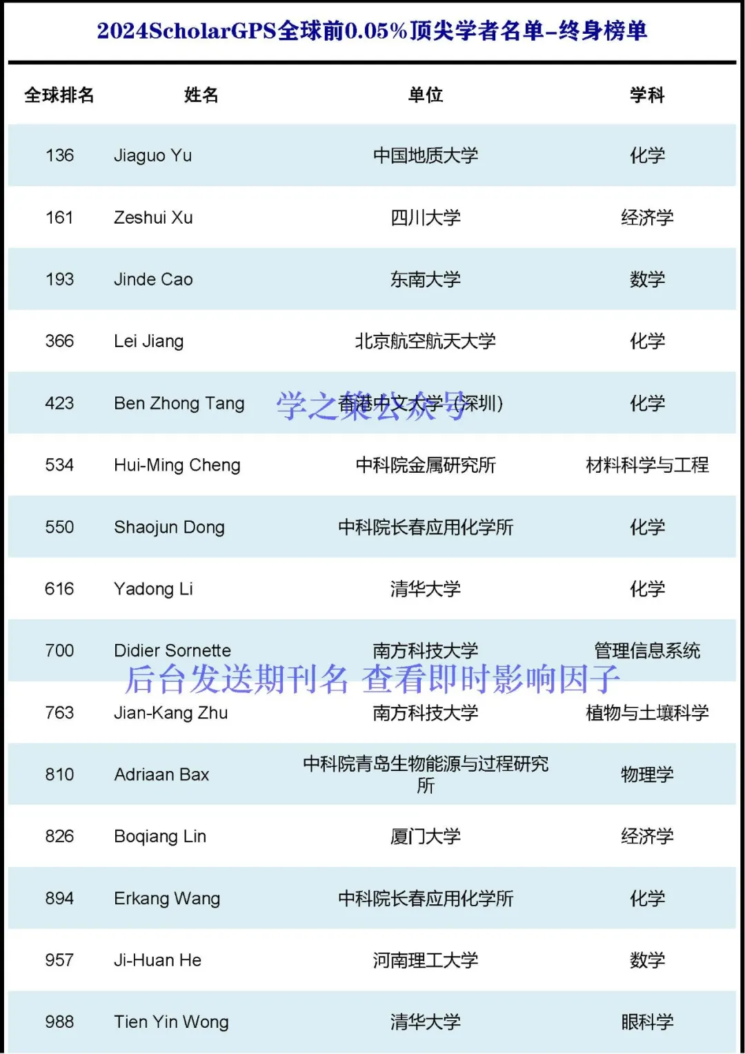 在全球学术研究快速发展的背景下,学者影响力的评估成为学术界和公众关注的焦点。日前,国际学术机构ScholarGPS发布了2024年全球前0.05%顶尖科学家榜单。