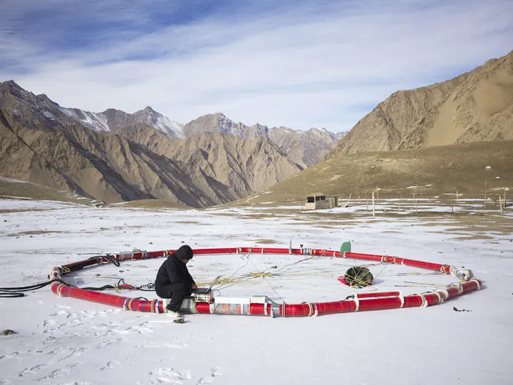 科研人员在新疆和田地区测试航空大地电磁探测系统(2025年1月11日摄)。新华社发(郭丰 摄)