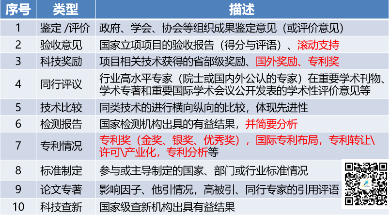 发明奖、进步奖:体现先进性、产业价值:子创新点、整体层面的技术指标及先进性比较,体现先进性;在国内外推广应用情况、经济社会效益,对国家和行业的意义;国内外获奖情况、成果评价等。
