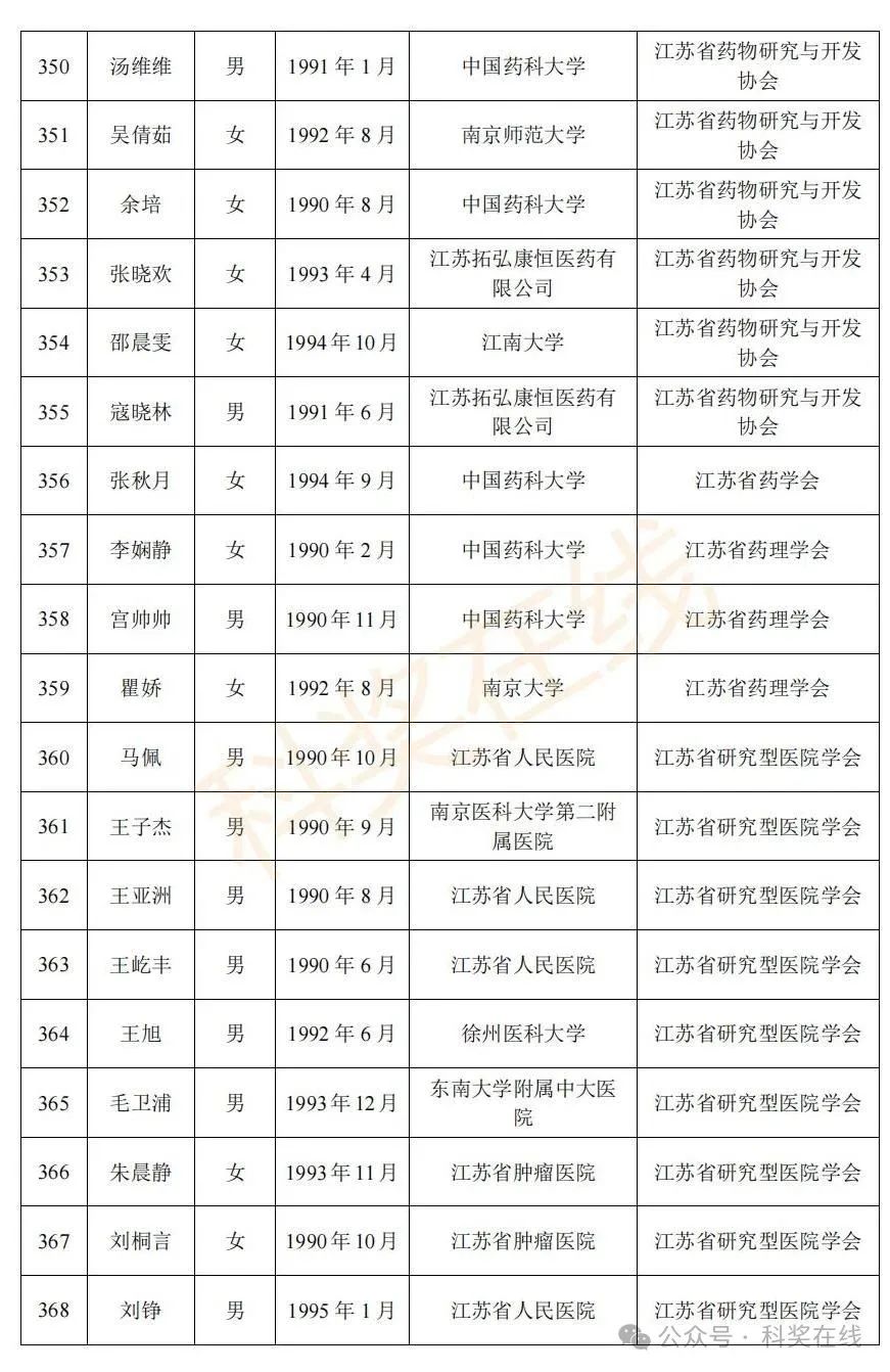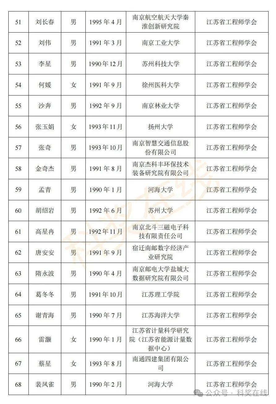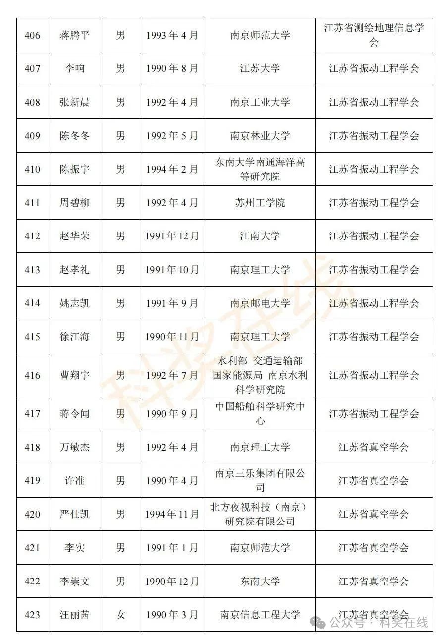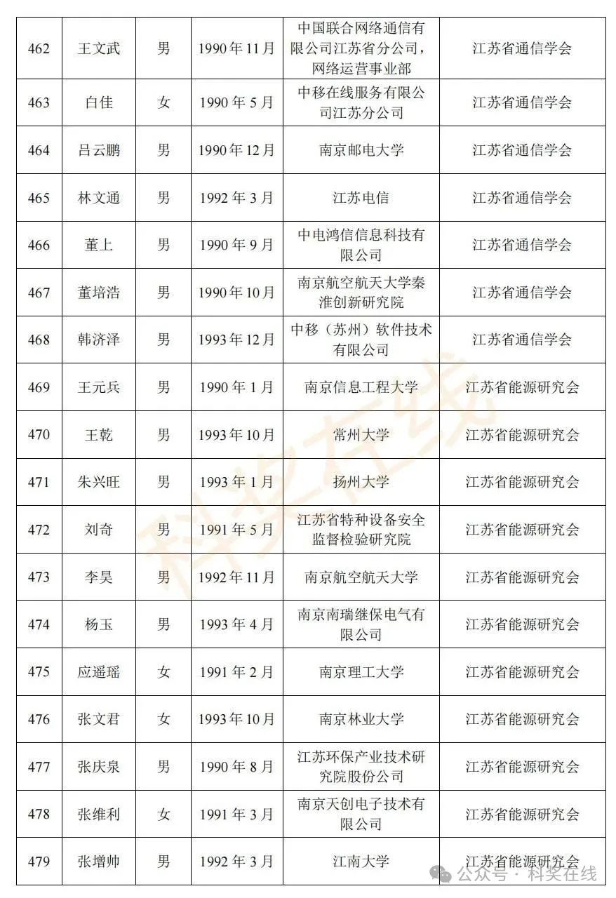 关于2025年江苏省青年科技人才托举工程拟资助对象的公示根据《关于开展2025年江苏省青年科技人才托举工程资助对象评选推荐工作的通知》,经各省级学会、省部属企事业单位、高校和设区市科协广泛发动,多渠道申报,专家评审,拟确定王再禹等1004名同志为2025年江苏省青年科技人才托举工程资助对象,现面向社会公示。