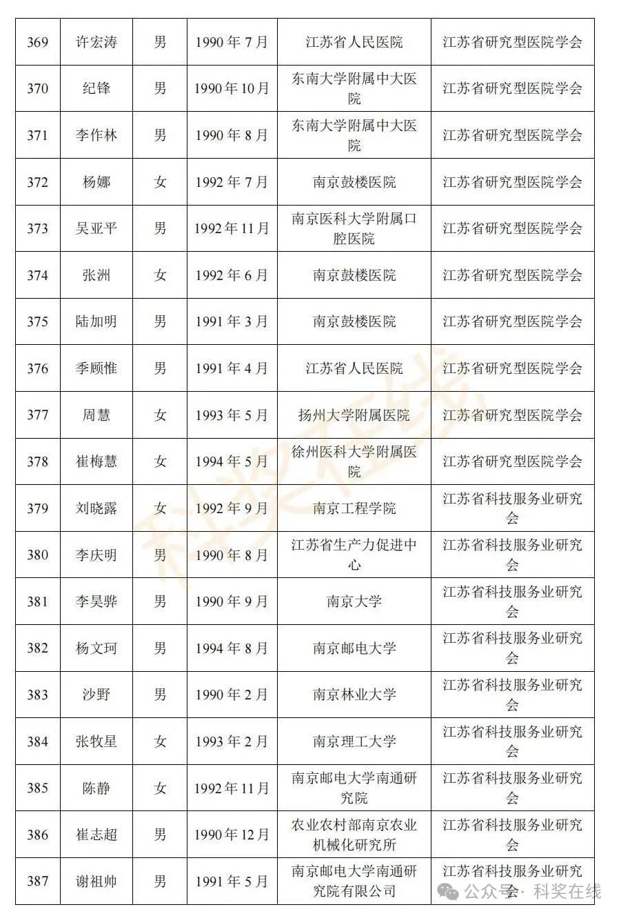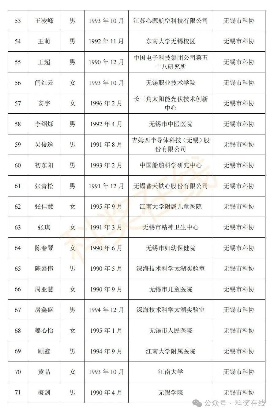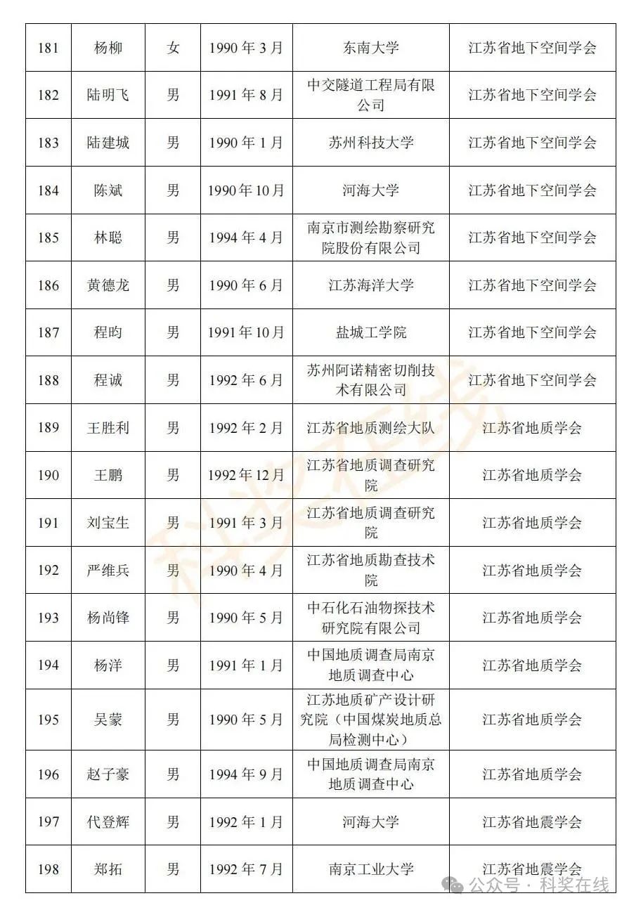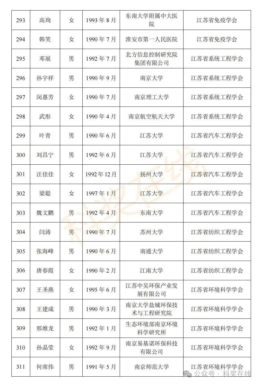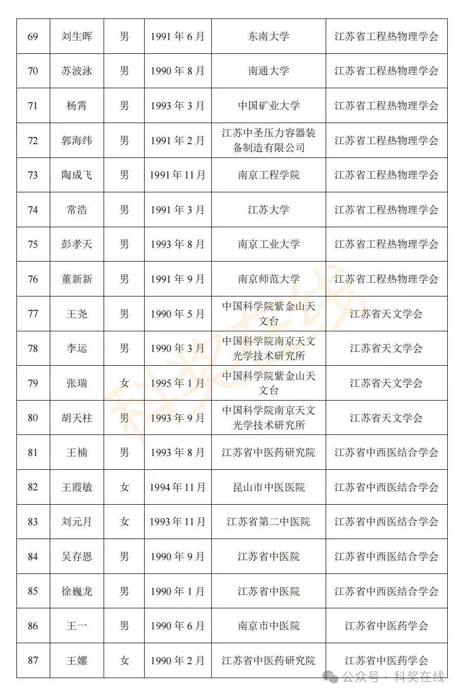 关于2025年江苏省青年科技人才托举工程拟资助对象的公示根据《关于开展2025年江苏省青年科技人才托举工程资助对象评选推荐工作的通知》,经各省级学会、省部属企事业单位、高校和设区市科协广泛发动,多渠道申报,专家评审,拟确定王再禹等1004名同志为2025年江苏省青年科技人才托举工程资助对象,现面向社会公示。