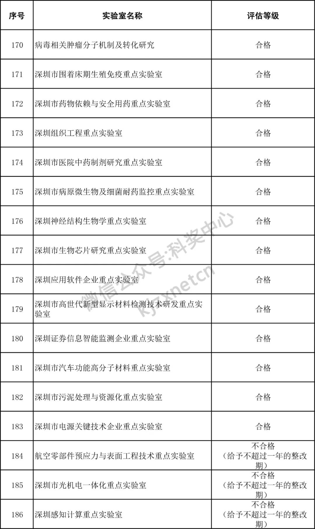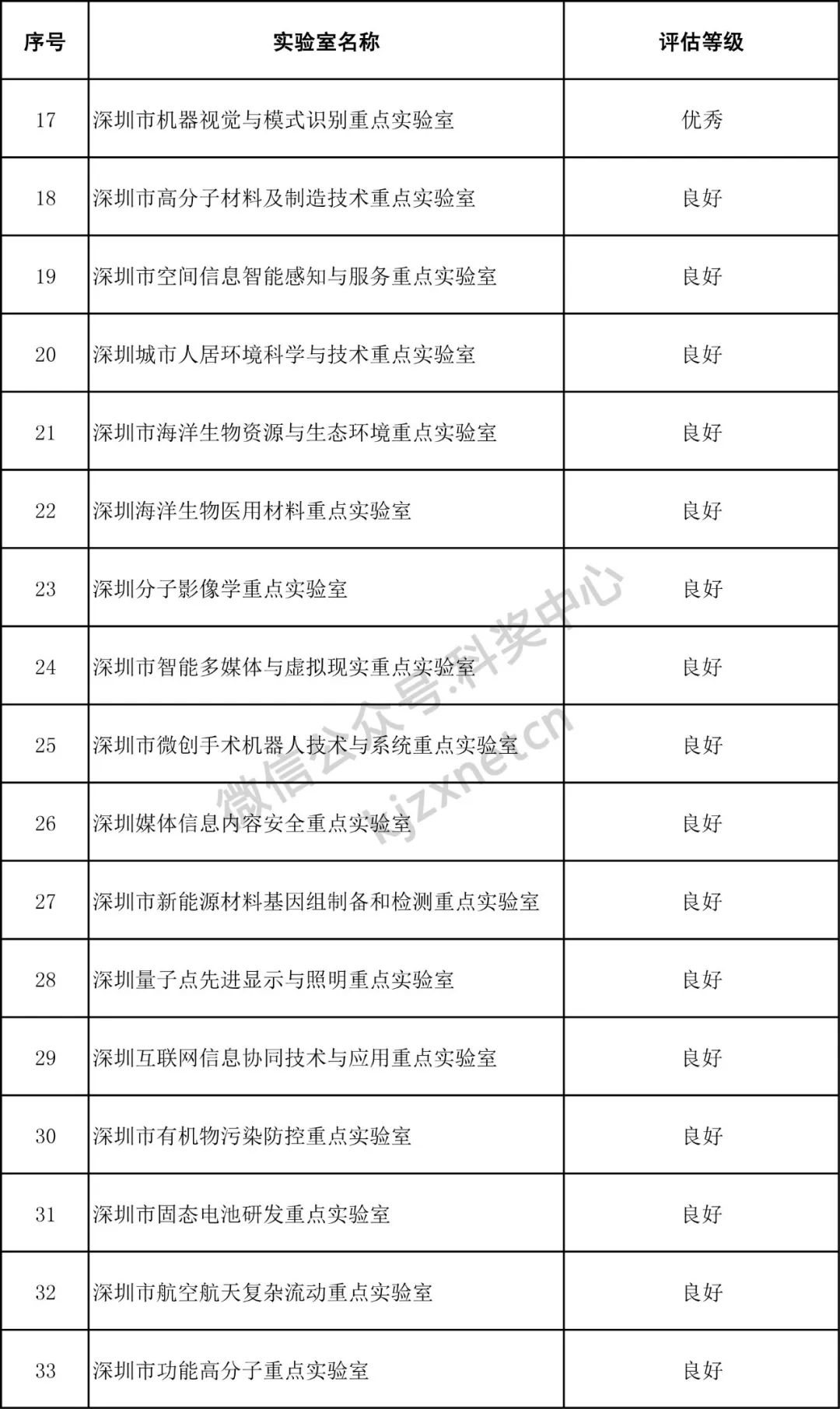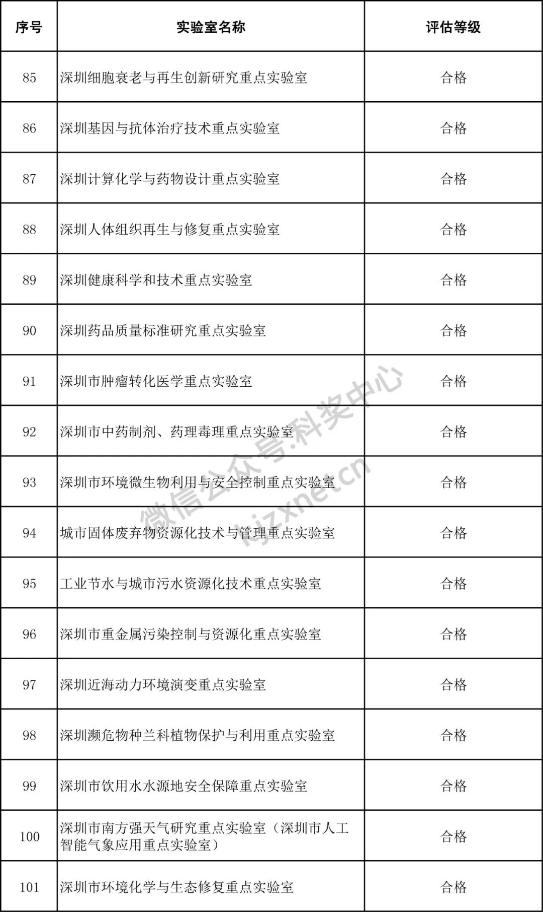 深圳市重点实验室评估结果公示