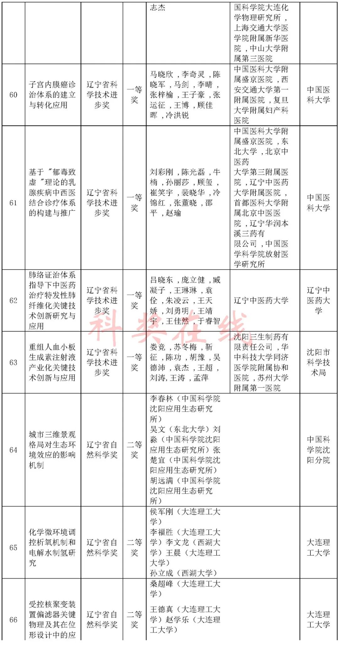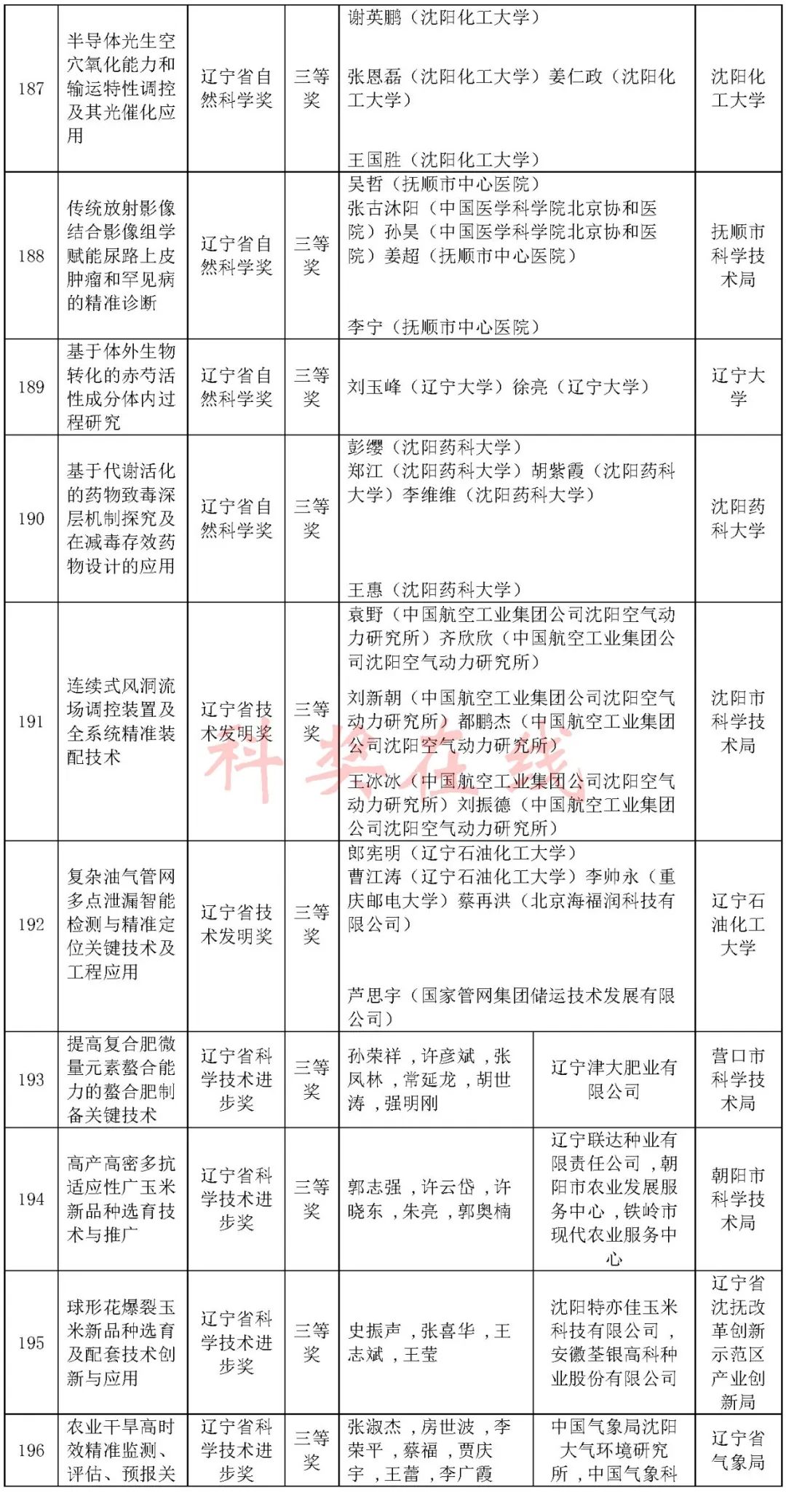 2024年度辽宁省科技奖会评结果公布,一等奖63项