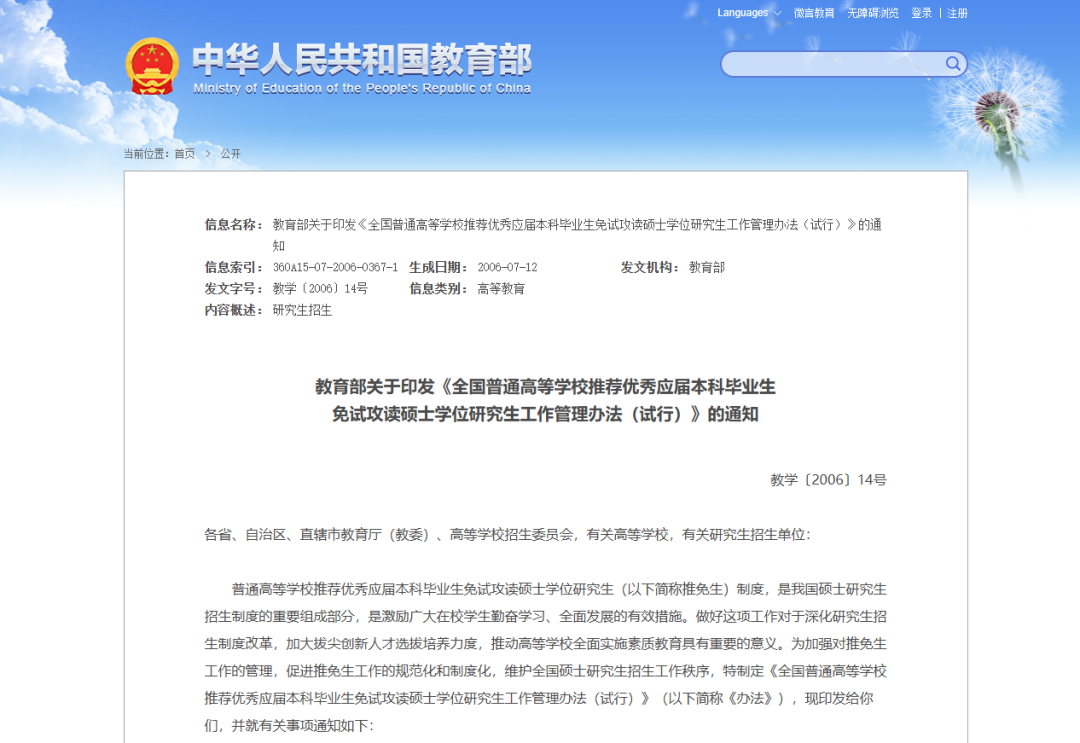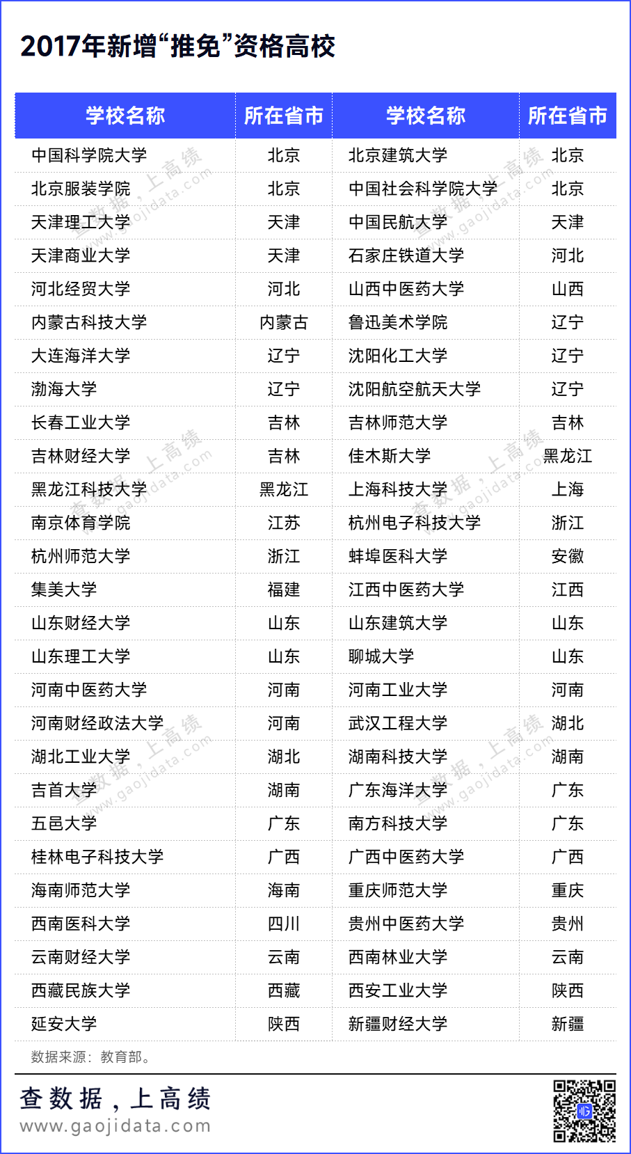 2017年,《教育部办公厅关于印发〈新增推荐优秀应届本科毕业生免试攻读研究生普通高等学校申报确认办法〉的通知》(以下简称《通知》)规定,新增推免高校需符合以下条件: