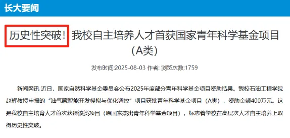 长江大学副校长赵辉教授的油气藏智能开发模拟与优化调控项目获批国家青年科学基金项目(A类)。这是该校自主培育人才首次获得该类项目。