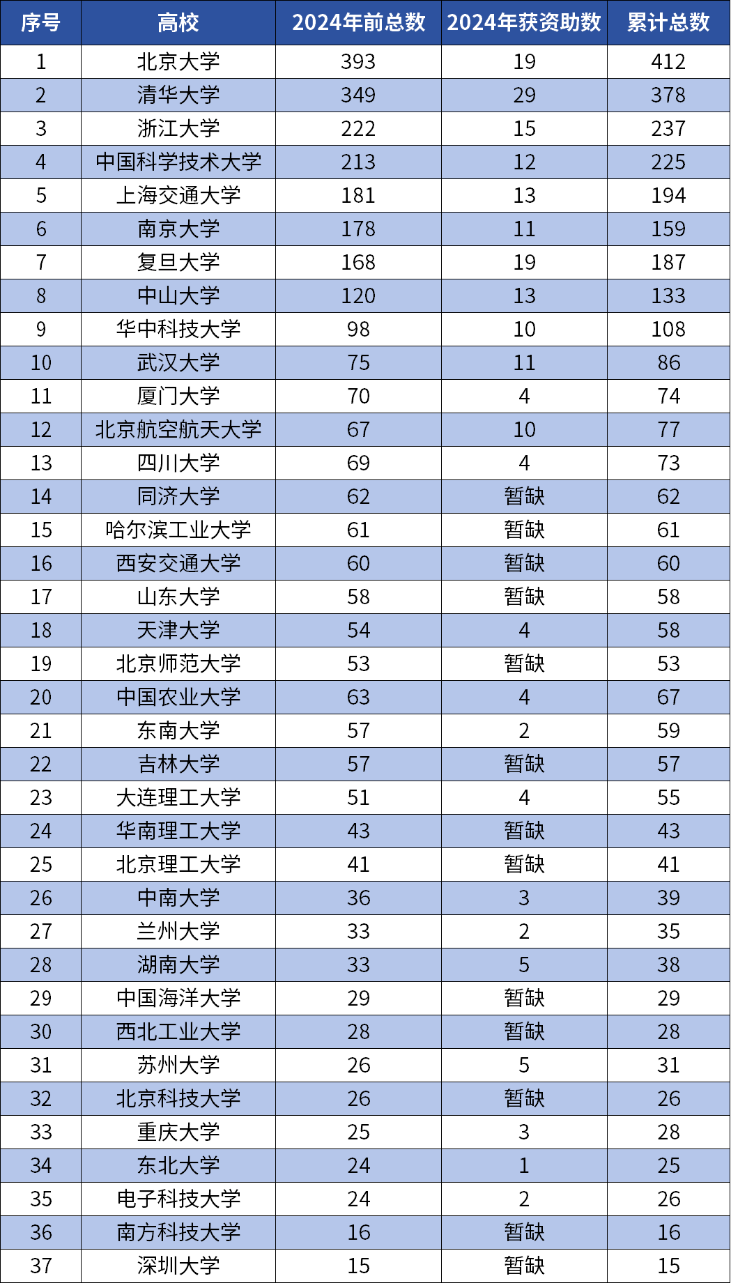 国家杰青(青A)数据:排序:清北、交浙、南/华科、复旦、科大。