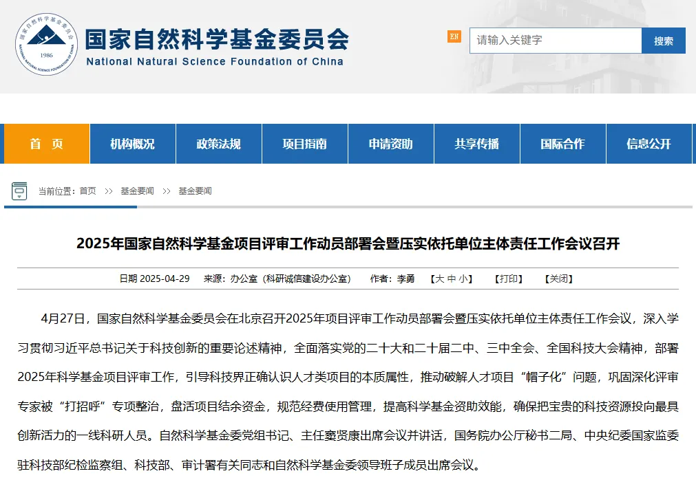 盼望着,盼望着,2025年国自然的评审结果过些天就要出来了。想必大家的心在此刻已经悬了起来。当然,由于今年4月27日国家自然科学基金委员会就在北京召开了2025年项目评审工作动员会议,安排部署今年的科学基金项目评审工作。所以不出意外,对于某些能够提前月余就知道自己中标国自然的选手来讲,此时心已经死/安了。