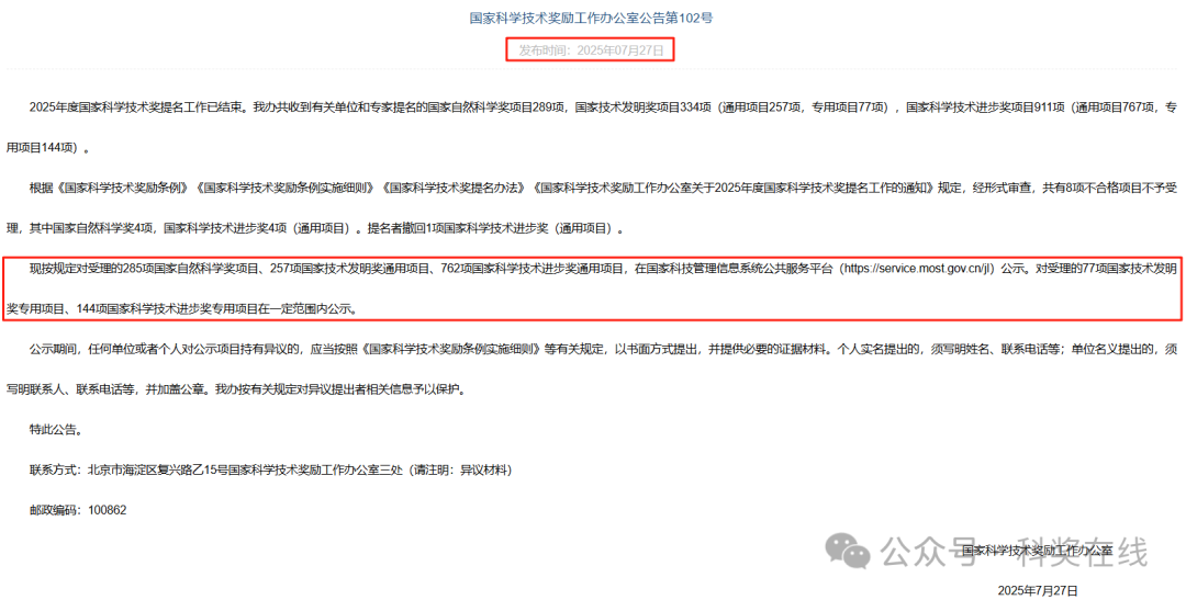 7月27日,科技部发布了2025年度国家科技奖受理结果,收到1534项,经形式审查,共有8项不合格,提名者撤回1项国家科技进步奖(通用项目)。实际受理1525项,受理的通用项目在国家科技管理信息系统公共服务平台(https://service.most.gov.cn/jl)进行公示。