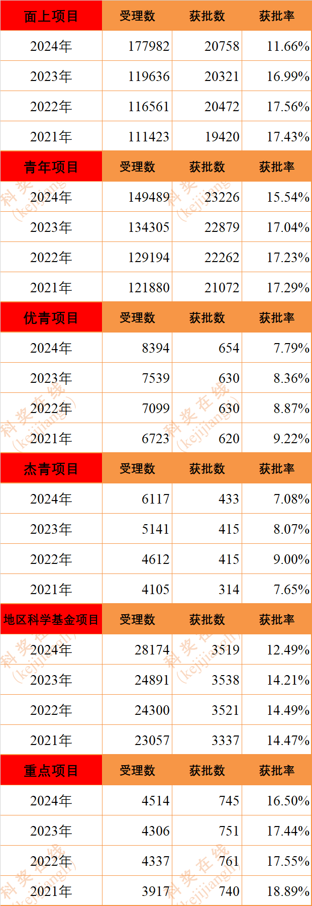 2025年国家自然科学基金项目资助结果即将发布之际,科奖在线回顾了近4年六大类项目的资助数据,供大家参考。