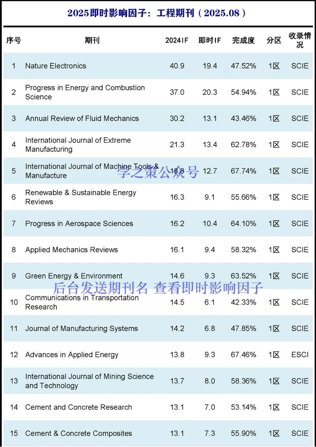 为了提前了解各期刊2025影响因子(2025IF,2026年6月发布)的情况,学之策公众号定期发布各领域期刊的即时影响因子,欢迎关注。