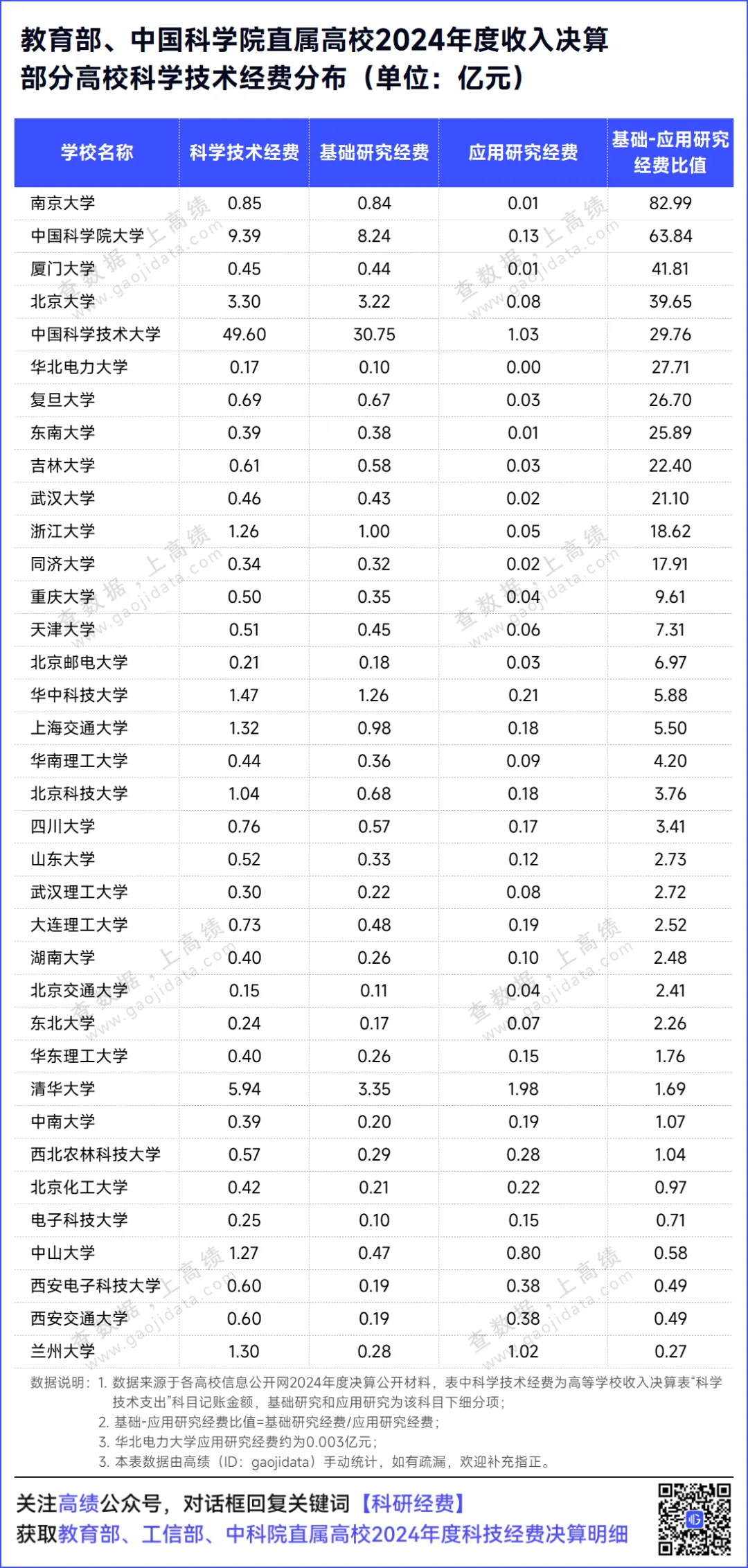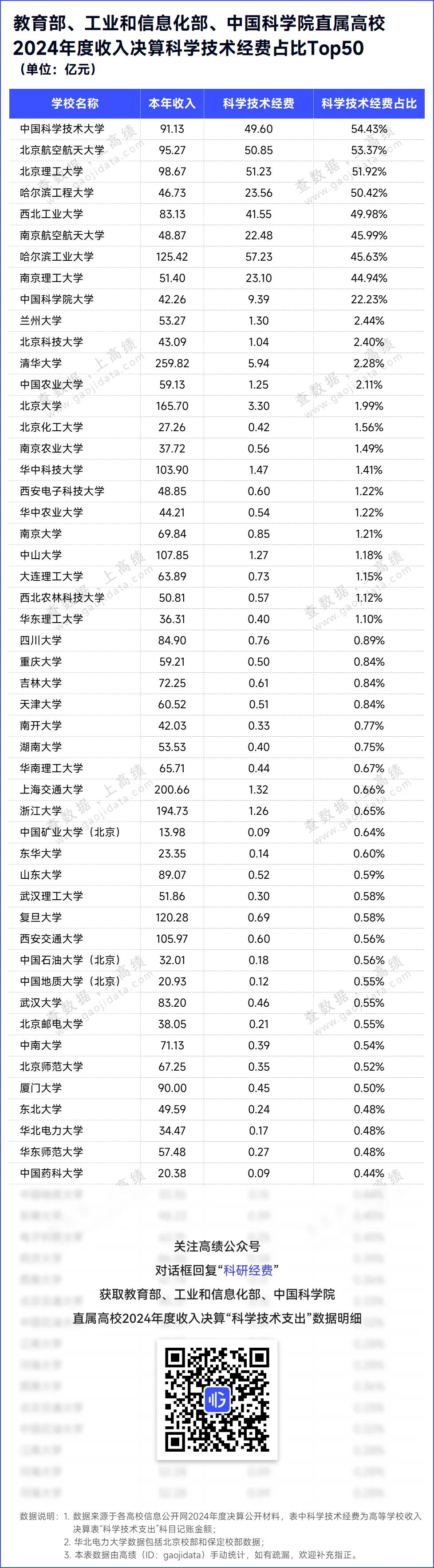 科学研究、人才培养、社会服务是当代高校的重要使命。本文,高绩(ID:gaojidata)梳理了三部门直属高校2024年度收入决算中的科学技术经费,一睹这些大学在过去一年在科学技术研究方面获得的经费支持情况。