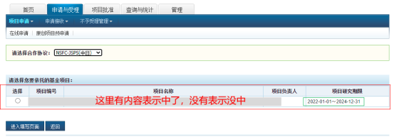 对此,有网友提供了一种通过从【新增项目申请】的页面间接查询的方法(仅供参考):