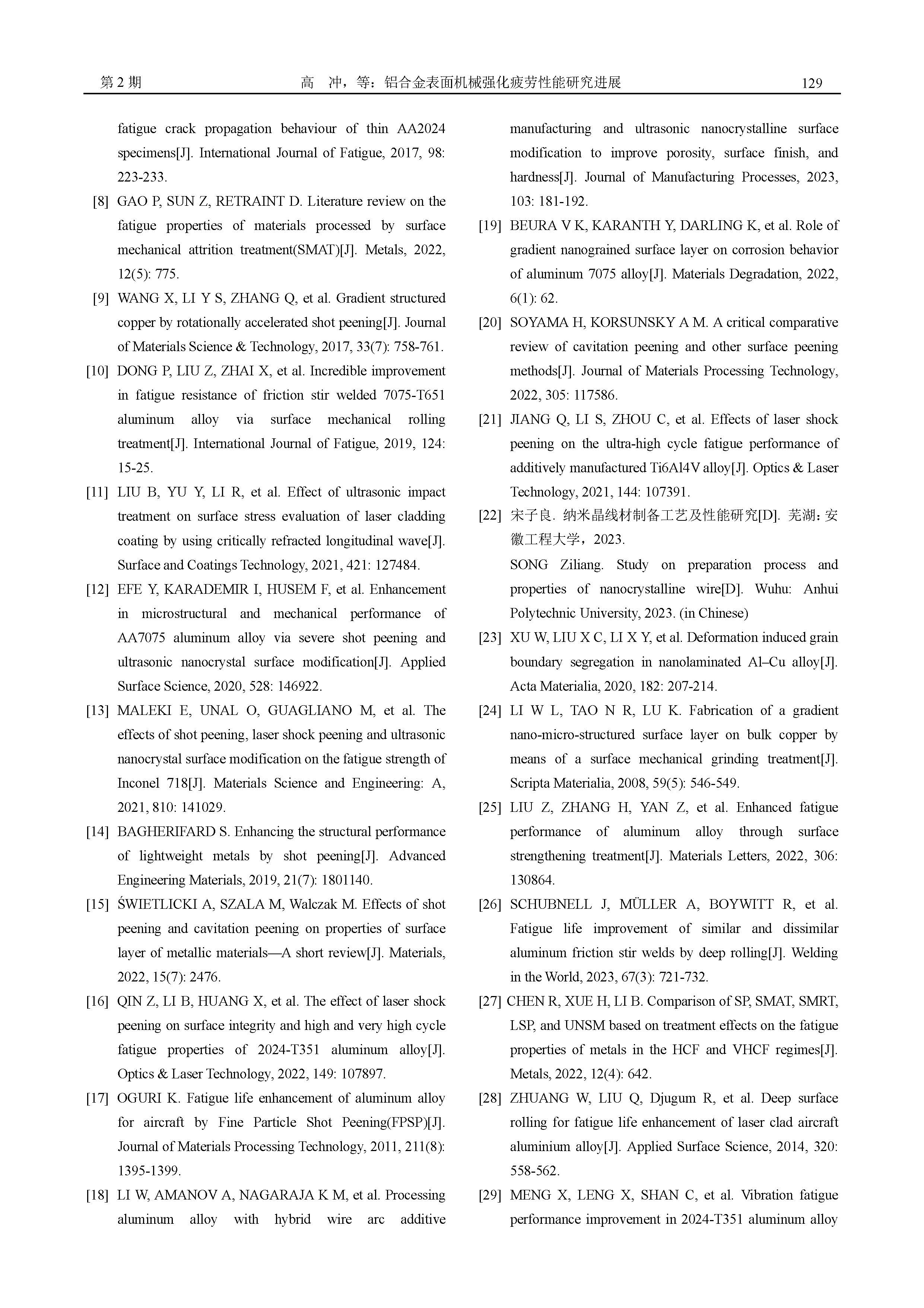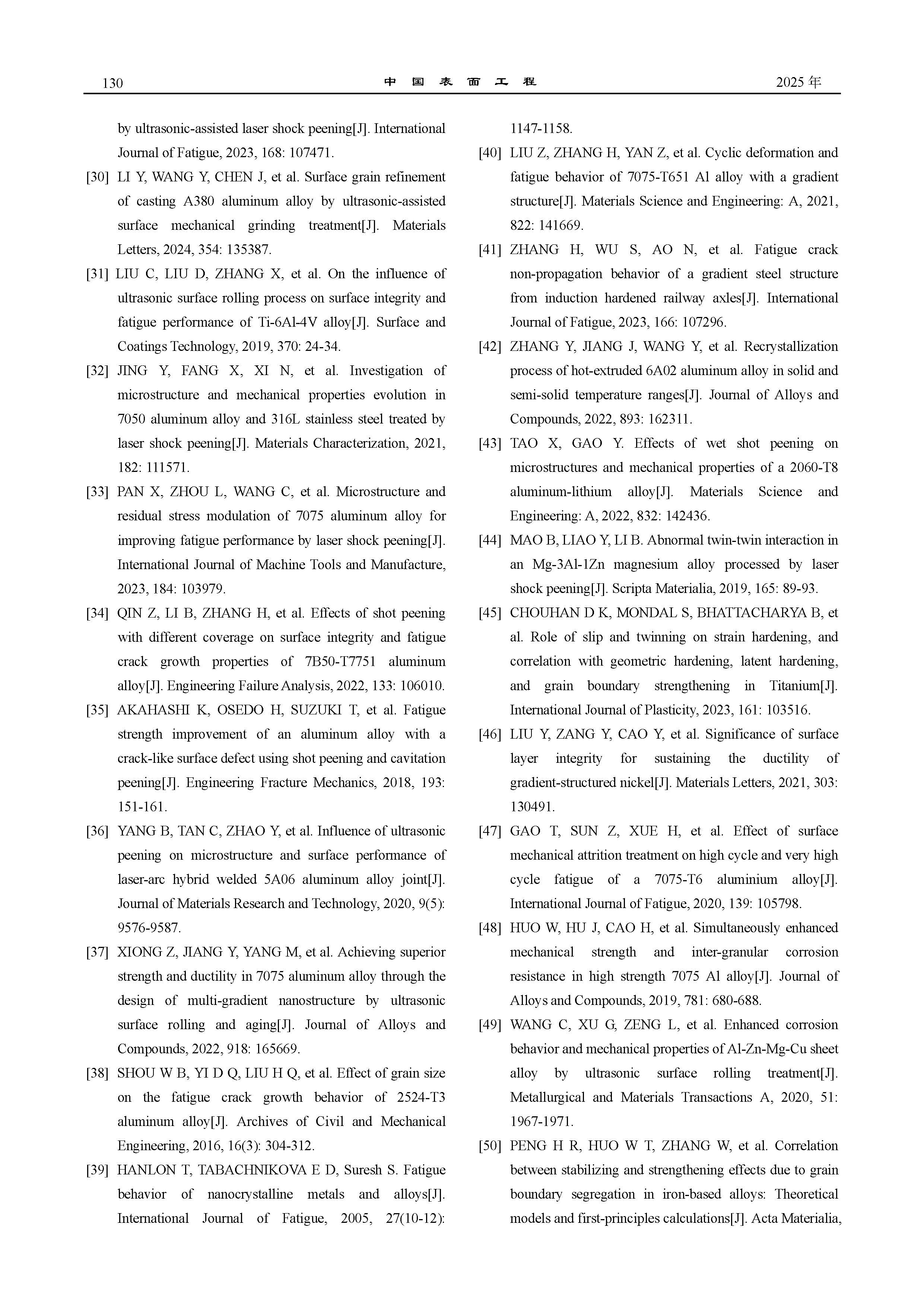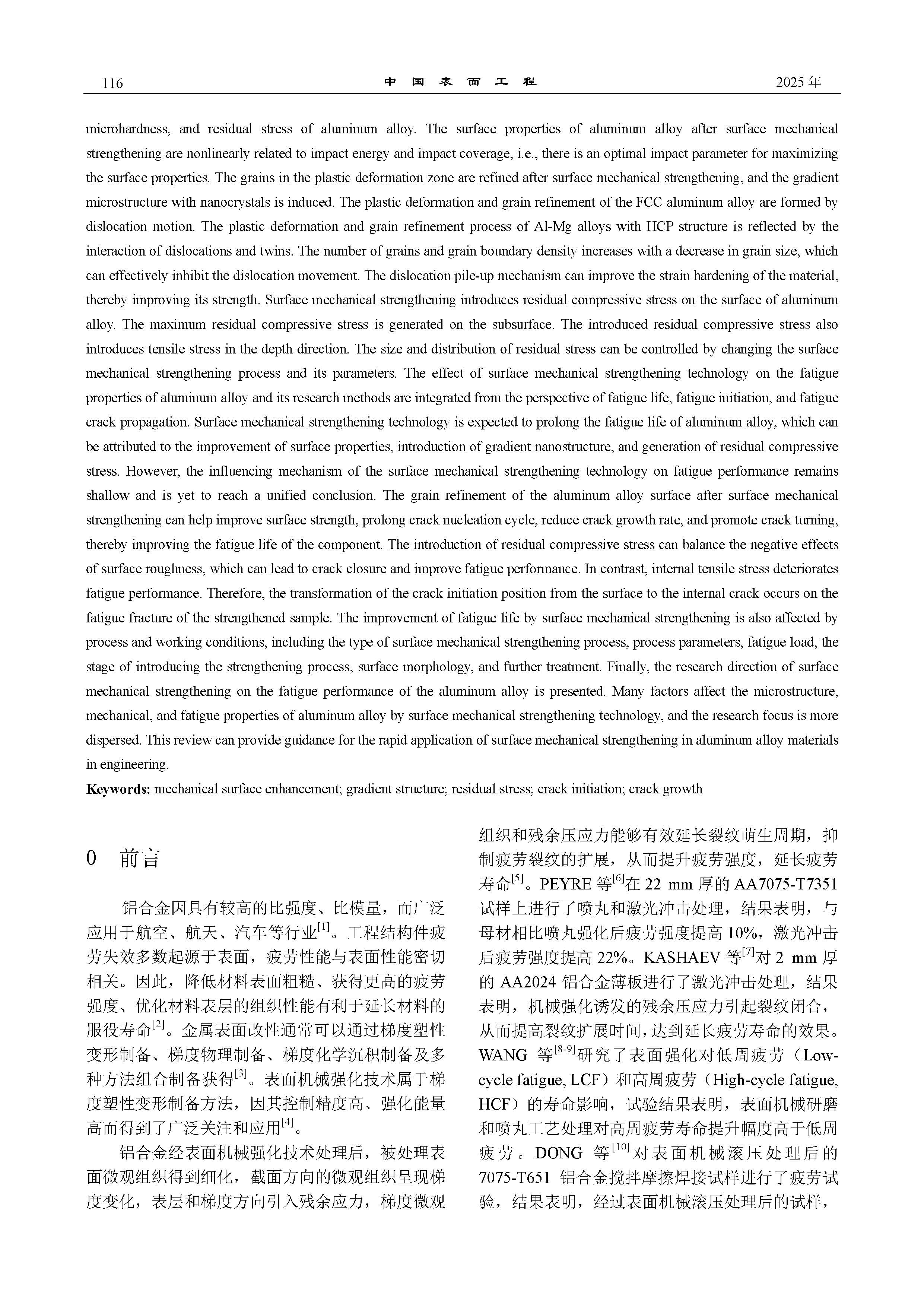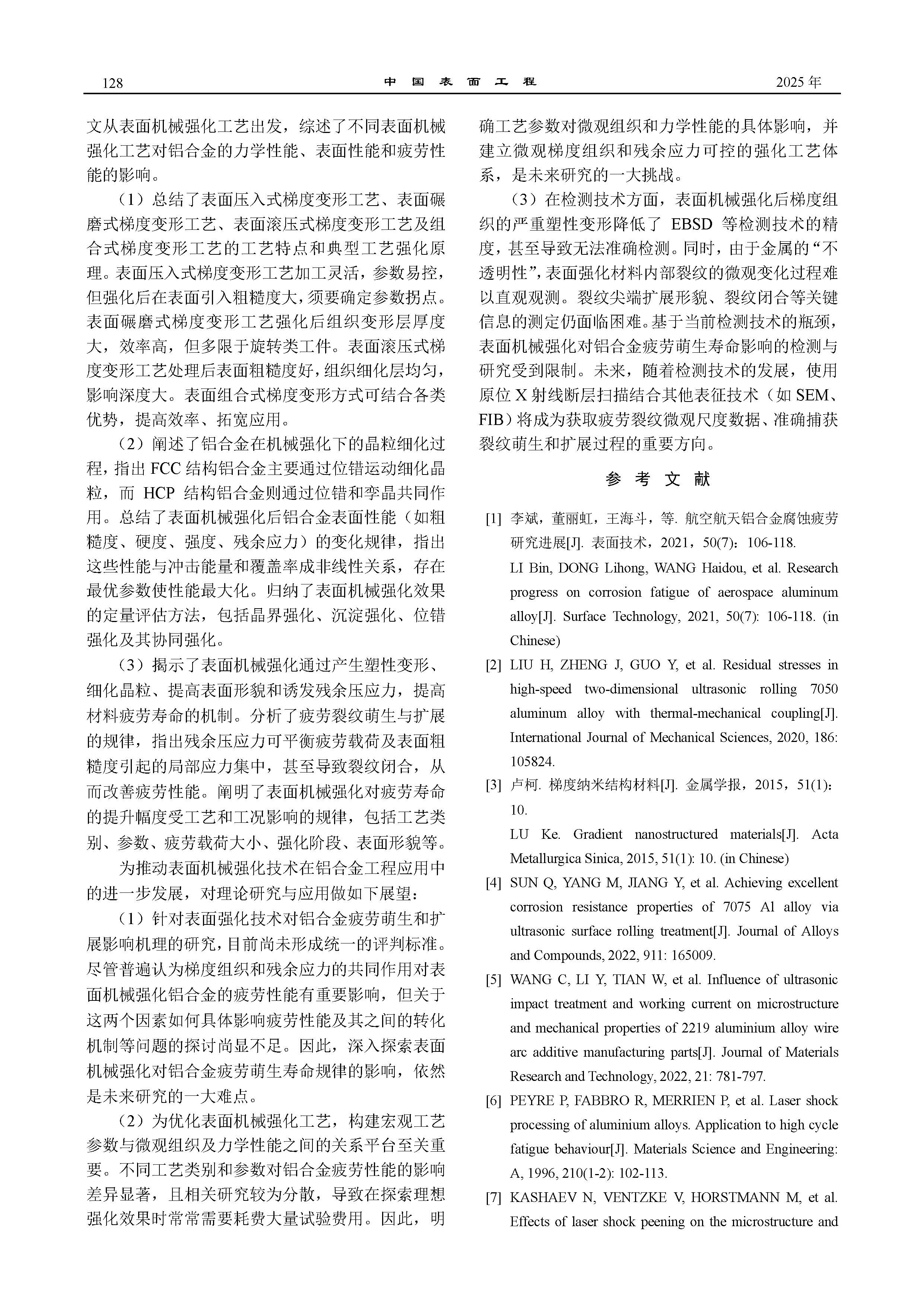 铝合金表面机械强化疲劳性能研究进展