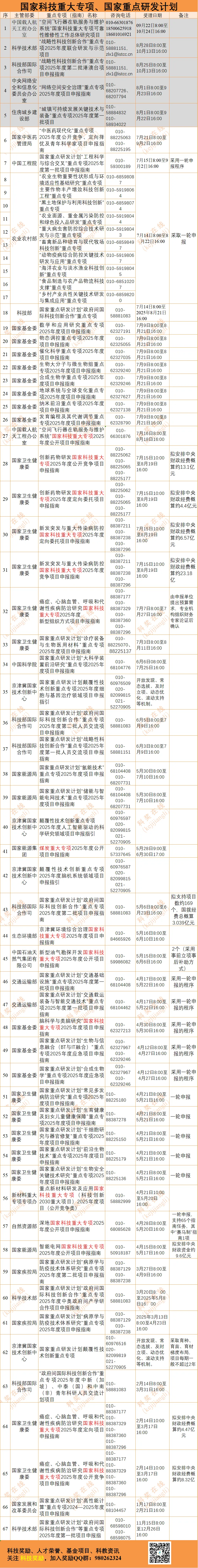 一、2025国家科技重大专项、国家重点研发计划申报情况