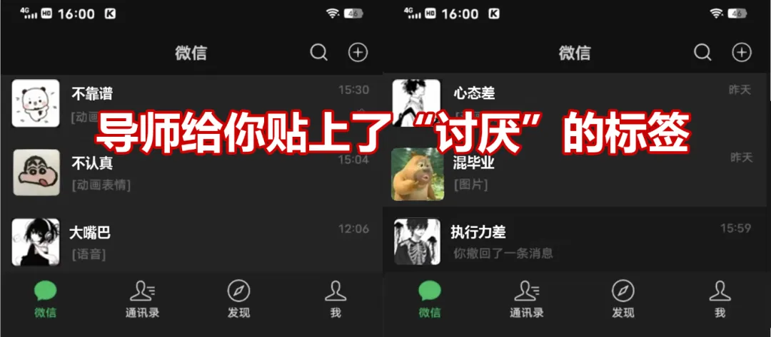 有的同学甚至把黑料曝到网上,导致导师名声都臭了。导师看见你这种大嘴巴就想抽你几个大嘴巴子。什么?你说你想毕业?一边侯着去吧!