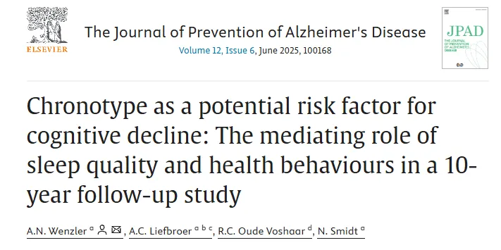 在本研究中,研究人员还重点考察了时型差异与认知下降的纵向关联。