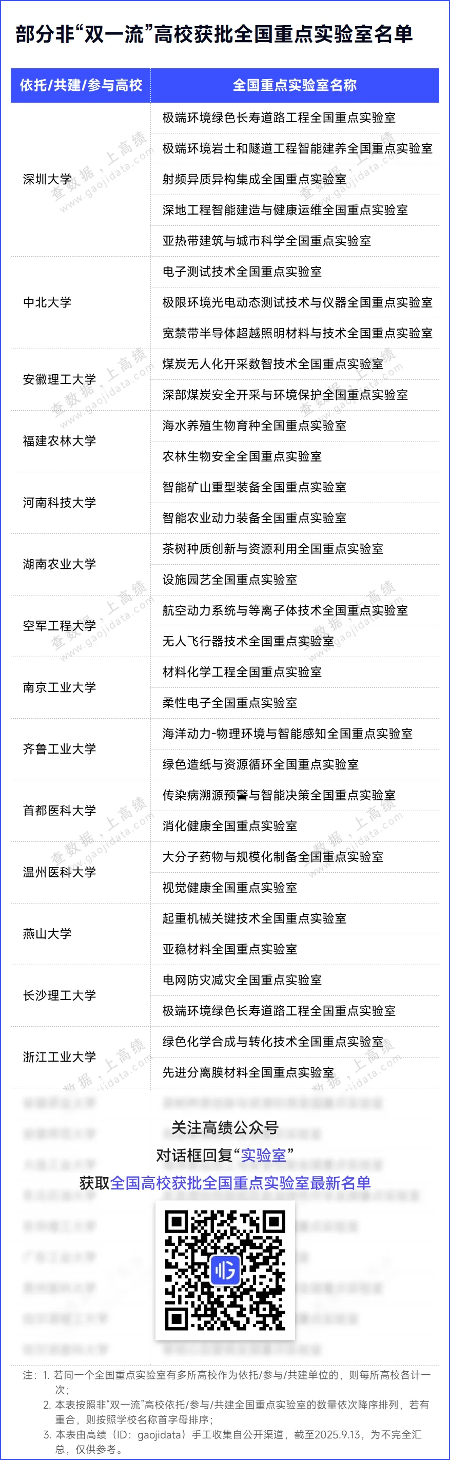 截至2025年9月13日,高绩(ID:gaojidata)据公开信息不完全统计,已有超500家全国重点实验室获批或重组完成。