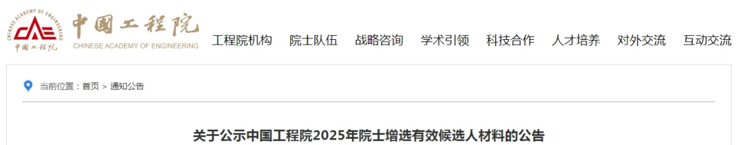 关于公示中国工程院2025年院士增选有效候选人材料的公告