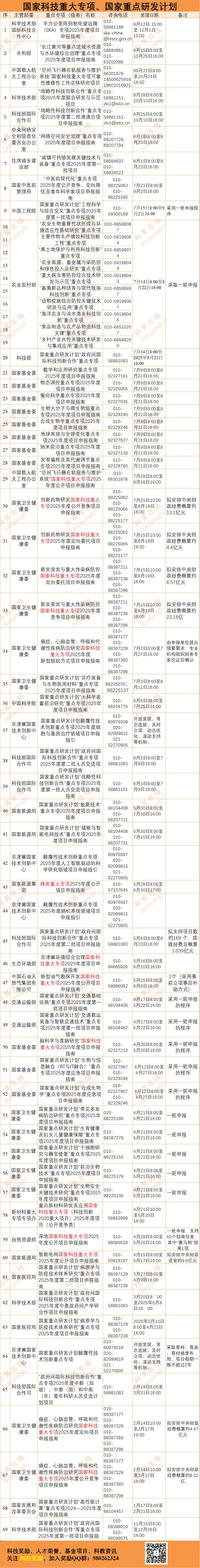 一、2025国家科技重大专项、国家重点研发计划申报情况 二、2025国家自然基金委非集中申报项目情况