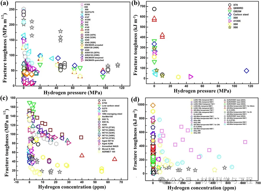 深入探讨微观组织特征、加载速率、氢压/氢浓度、温度等多因素耦合作用对断裂韧性的影响规律。