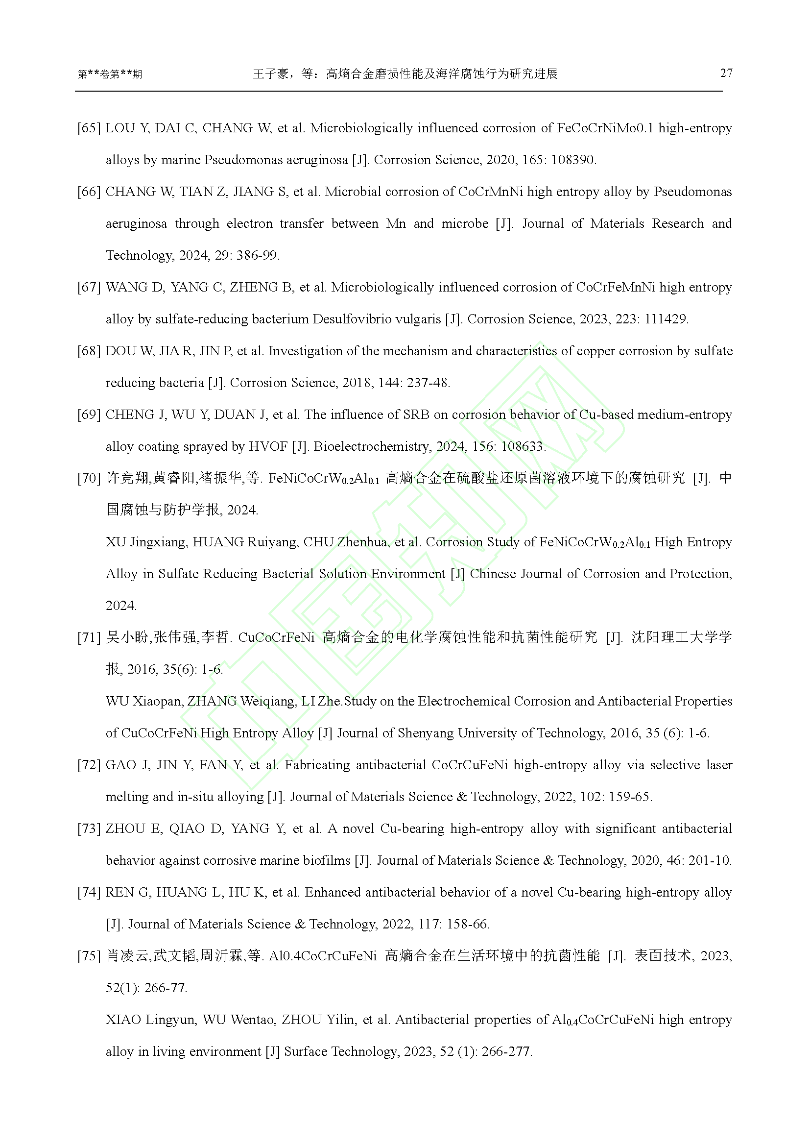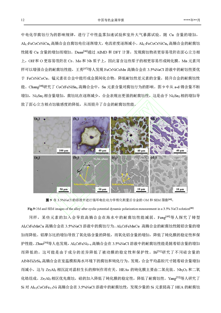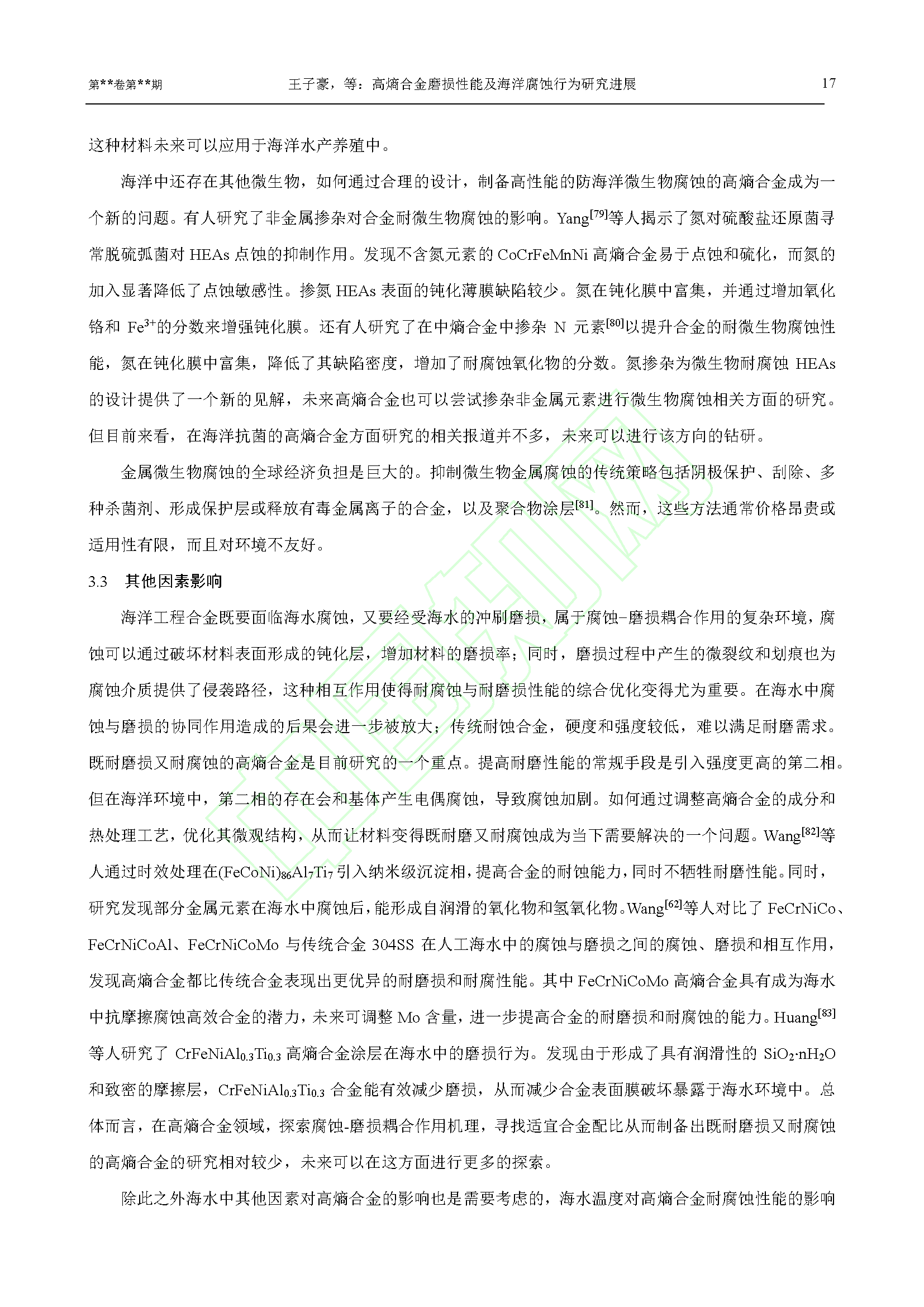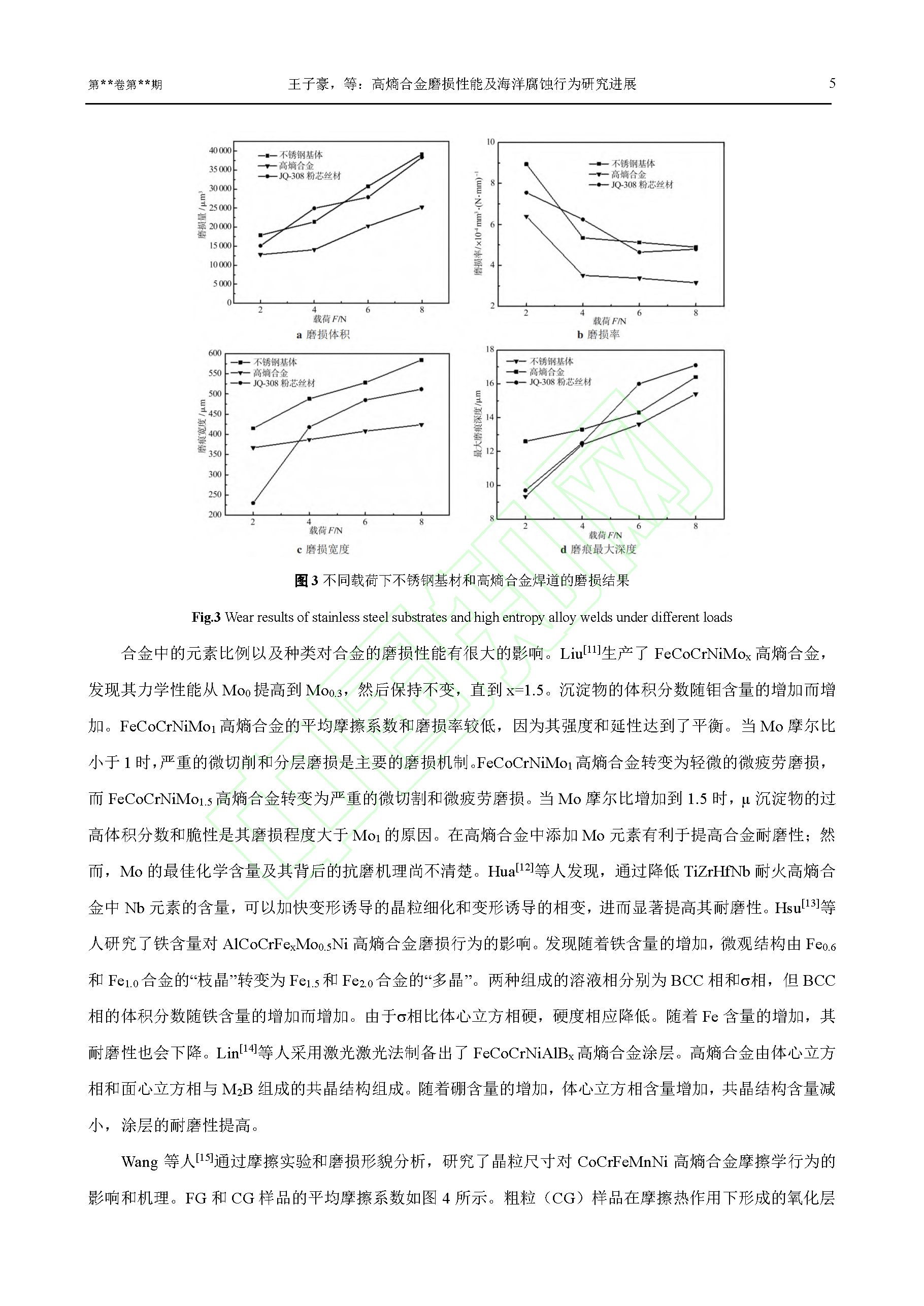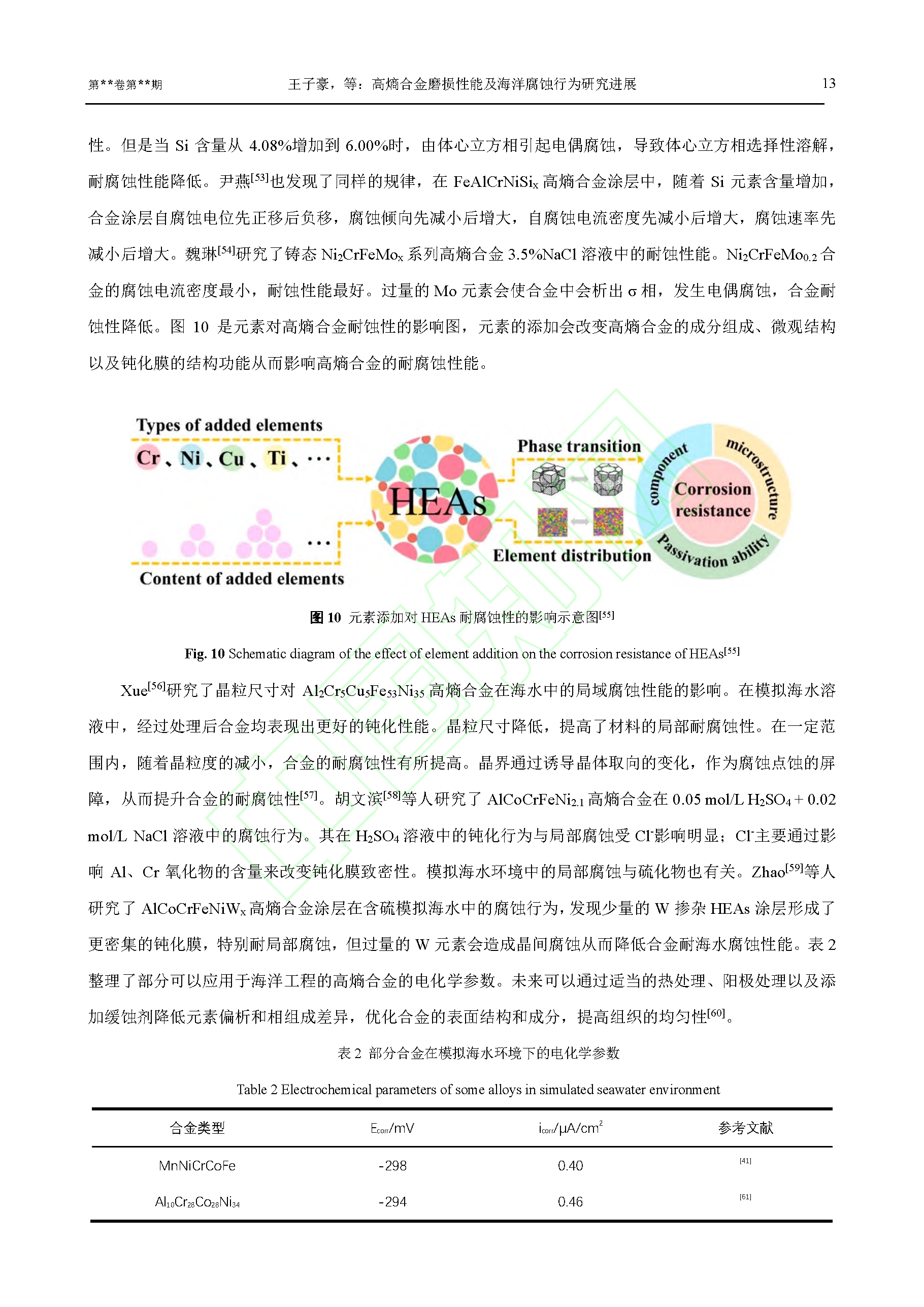 高熵合金磨损性能及海洋腐蚀行为研究进展