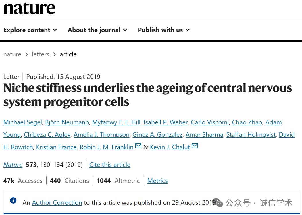 [10]诚信科研通过筛库,发现2019年8月15日,剑桥大学Kevin J. Chalut团队在Nature 杂志上发表题为“Niche stiffness underlies the ageing of central nervous system progenitor cells” 的研究文章(2019年8月29日对更正过一次),文章内涉嫌2对图片旋转重复使用。