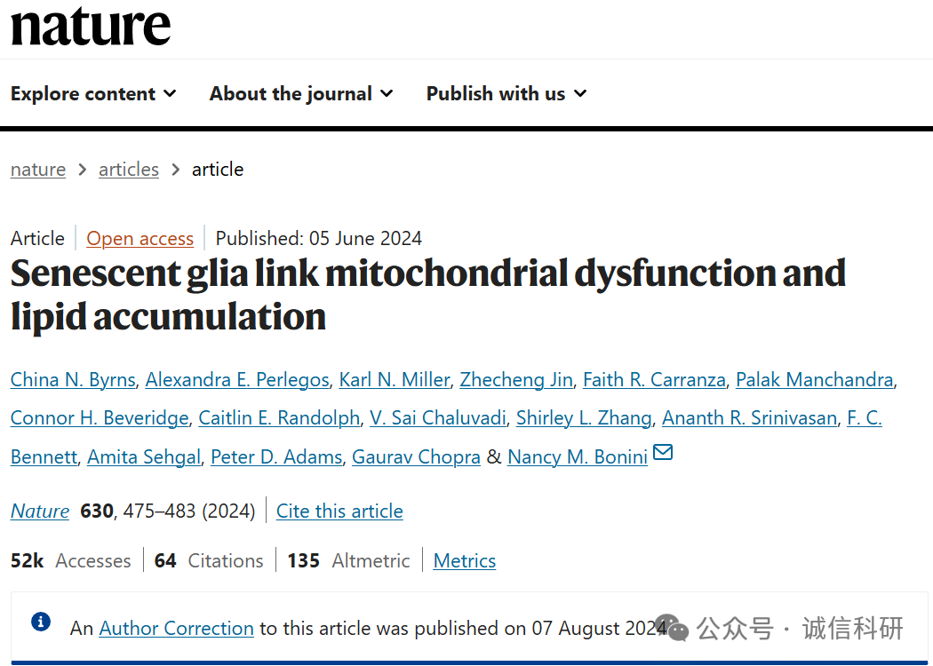 [6]诚信科研通过筛库,发现2024年6月5日,宾夕法尼亚大学Nancy M. Bonini 团队(美国国家科学院院士和美国艺术与科学院院士,Nancy M. Bonini教授是一位真正的先驱。她通过优雅而严谨的遗传学方法,证明了果蝇是研究人类神经退行性疾病的强大工具,极大地推动了该领域的发展。她的工作不仅在基础研究上揭示了疾病发生的核心机制,更重要的是为开发新的治疗策略带来了希望。她是一位连接基础科学与人类健康的典范性科学家)在Nature 杂志上发表题为“Senescent glia link mitochondrial dysfunction and lipid accumulation” 的研究文章(2024年8月7日更正过一次),文章内涉嫌1对图片重复使用。