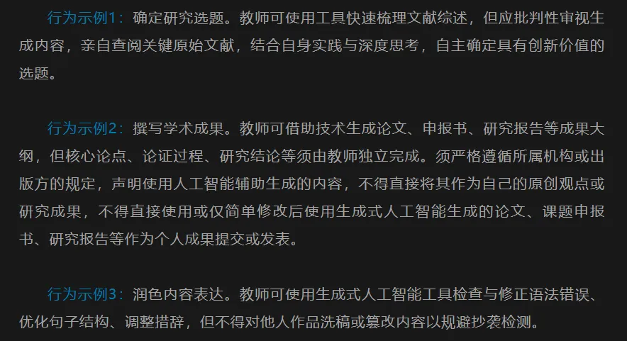 《指引》以严谨的措辞划定了教师使用AI的伦理红线与操作边界,比如: