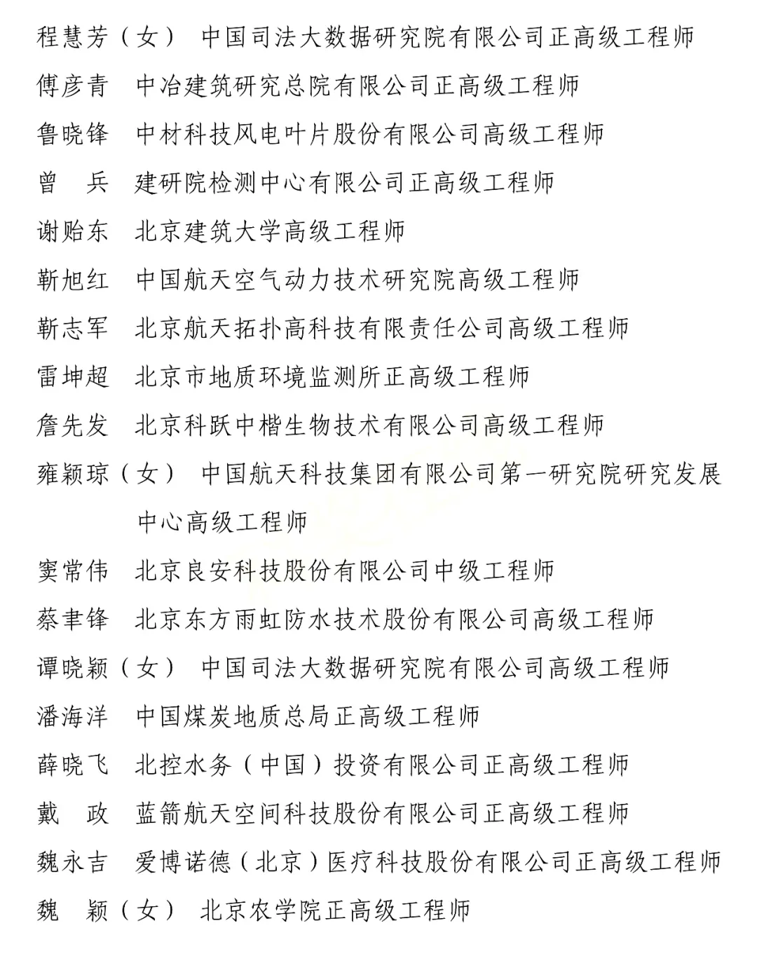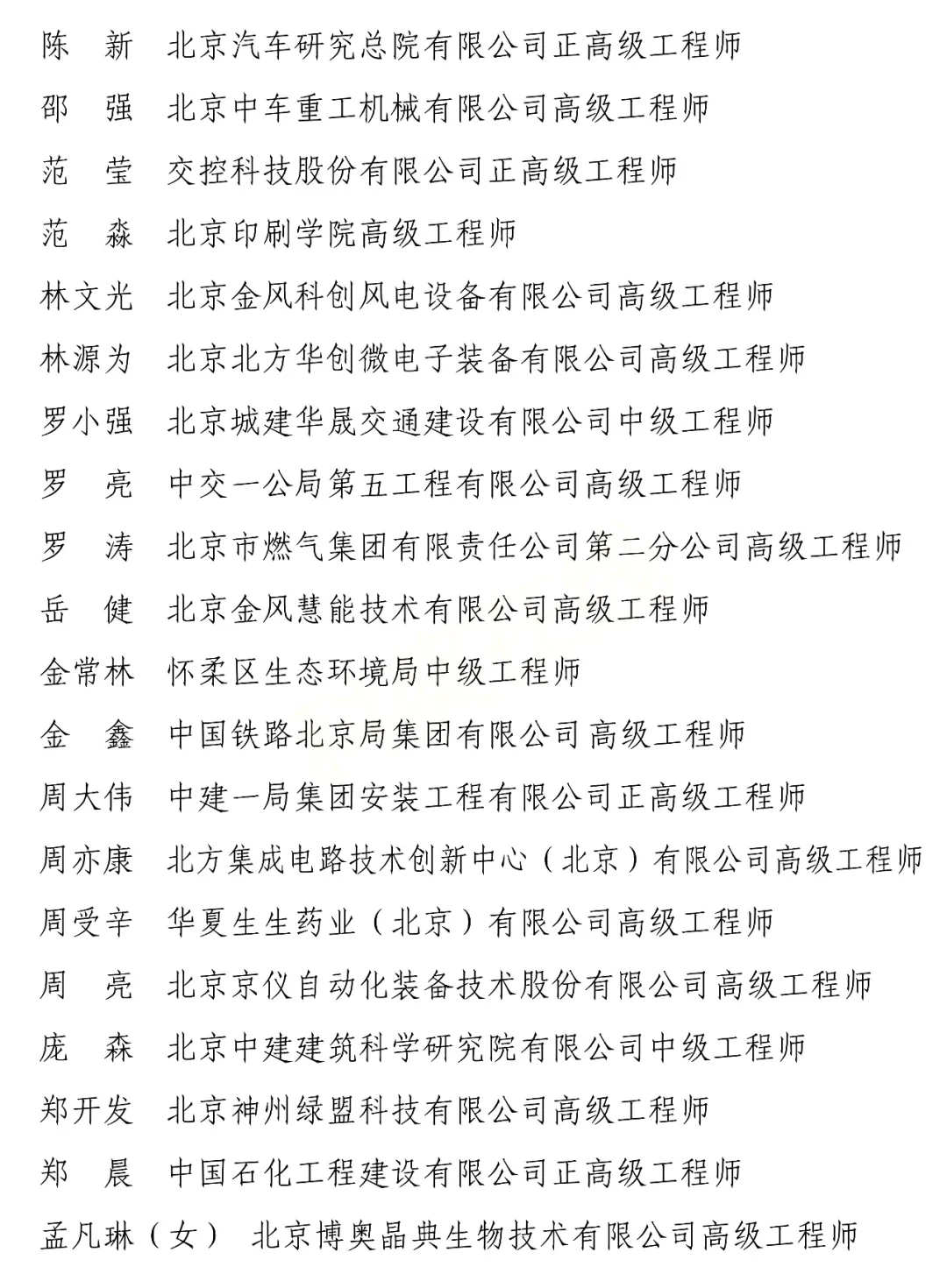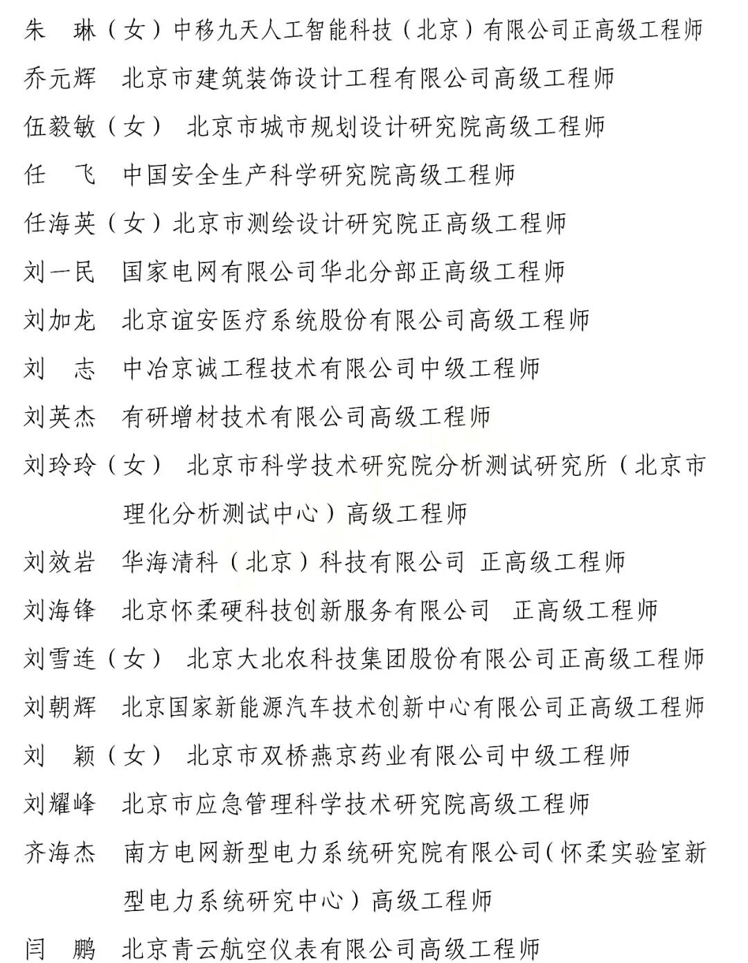 第二十五届北京优秀青年工程师表彰人选公示 按照《北京优秀青年工程师评选表彰工作方案》,北京市科学技术协会、北京市人力资源和社会保障局联合开展第二十五届北京优秀青年工程师评选表彰工作。经推荐、评审、考察,丁欢等229人拟入选第二十五届北京优秀青年工程师,丁一等19人拟入选第二十五届北京优秀青年工程师标兵。
