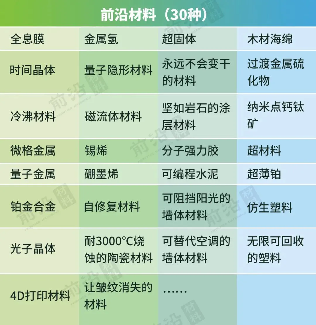 最全整理!全球30大前沿新材料介绍及未来发展趋势解析!