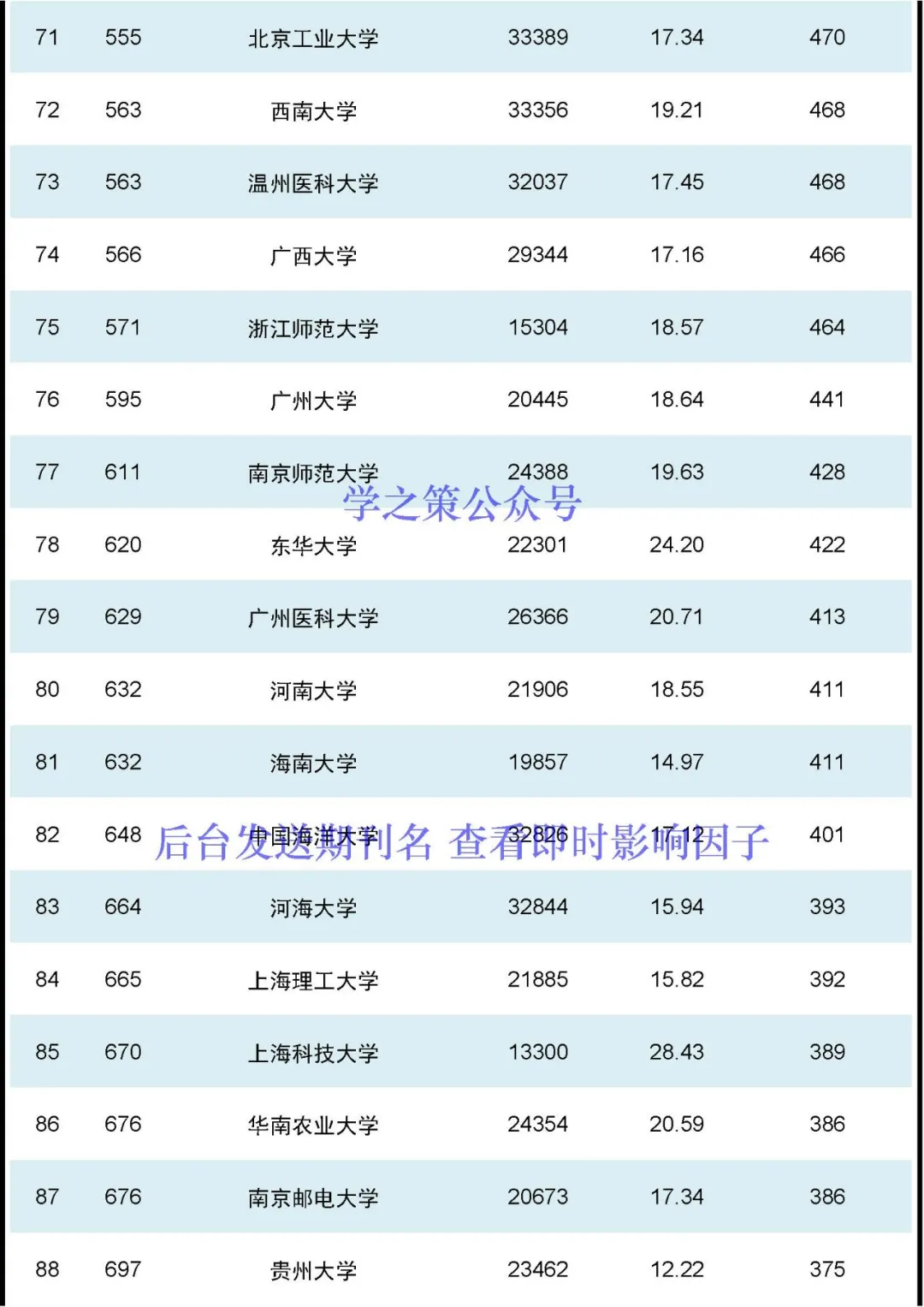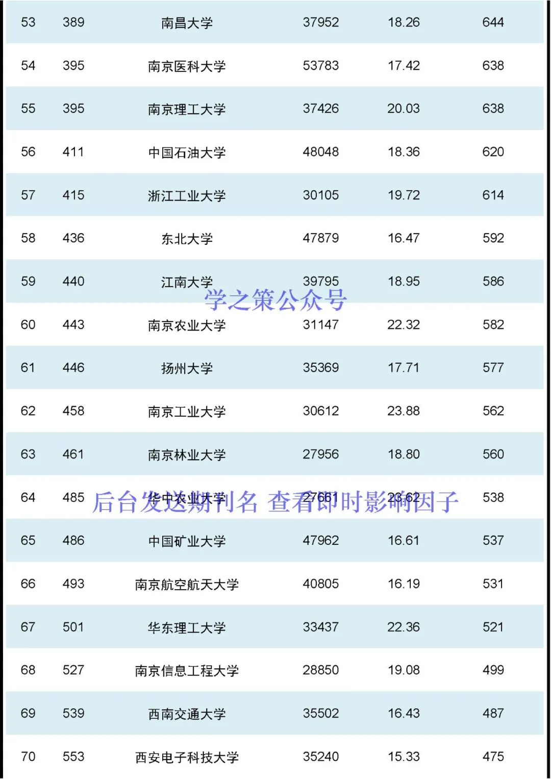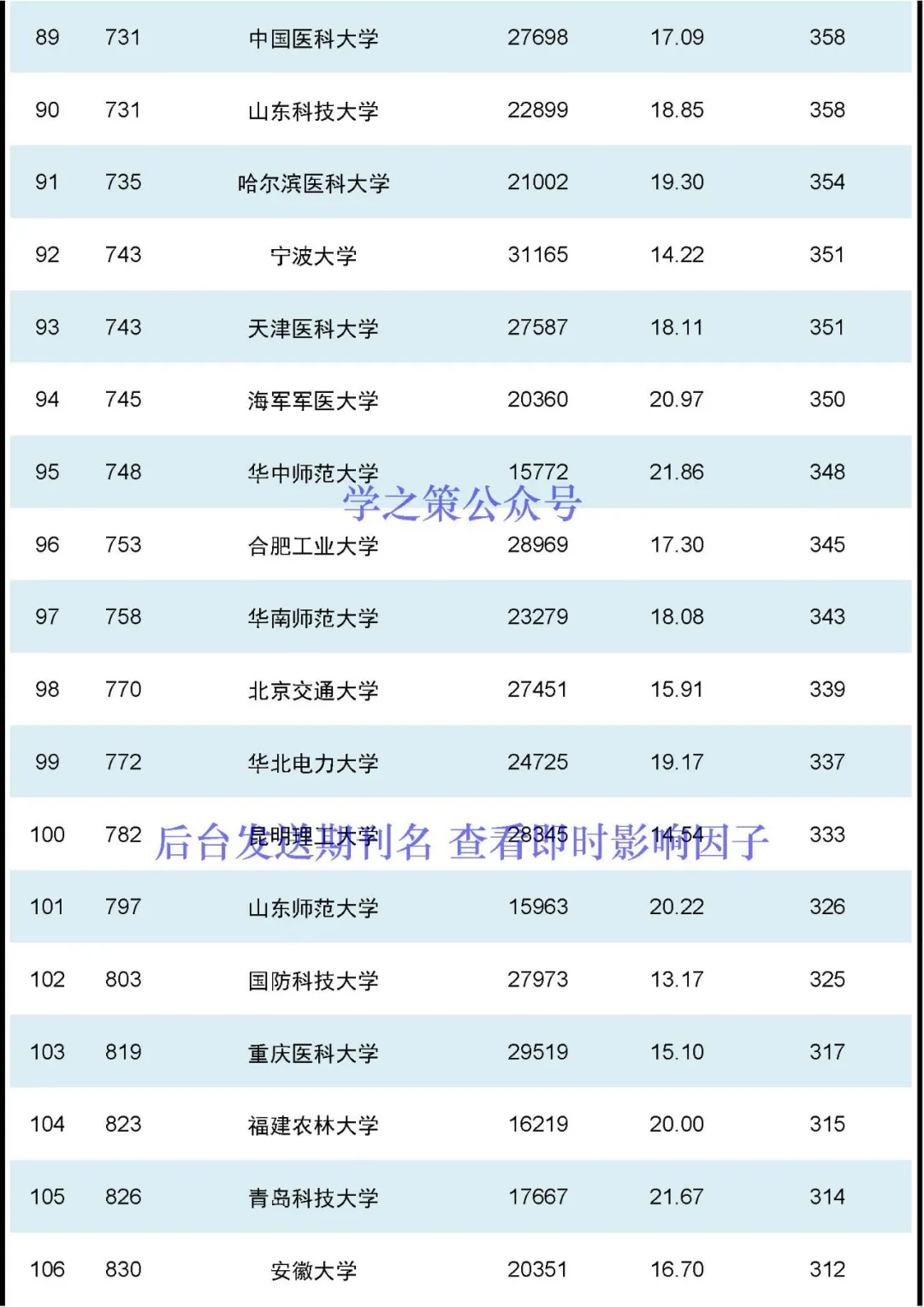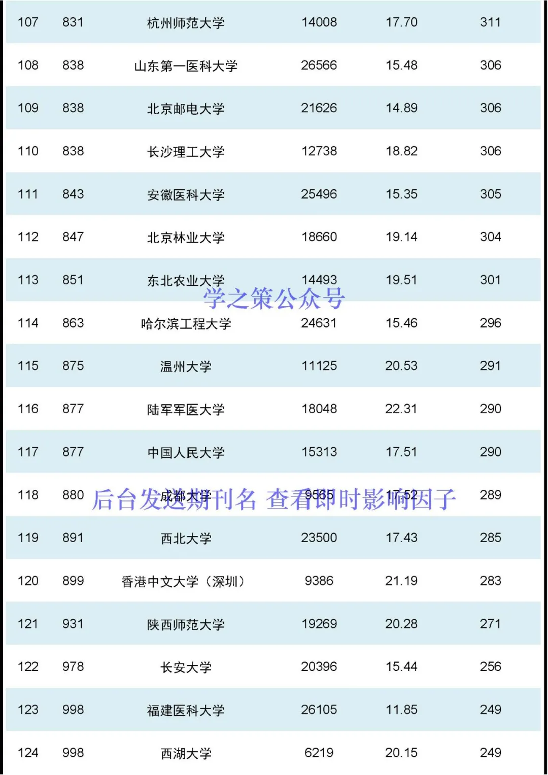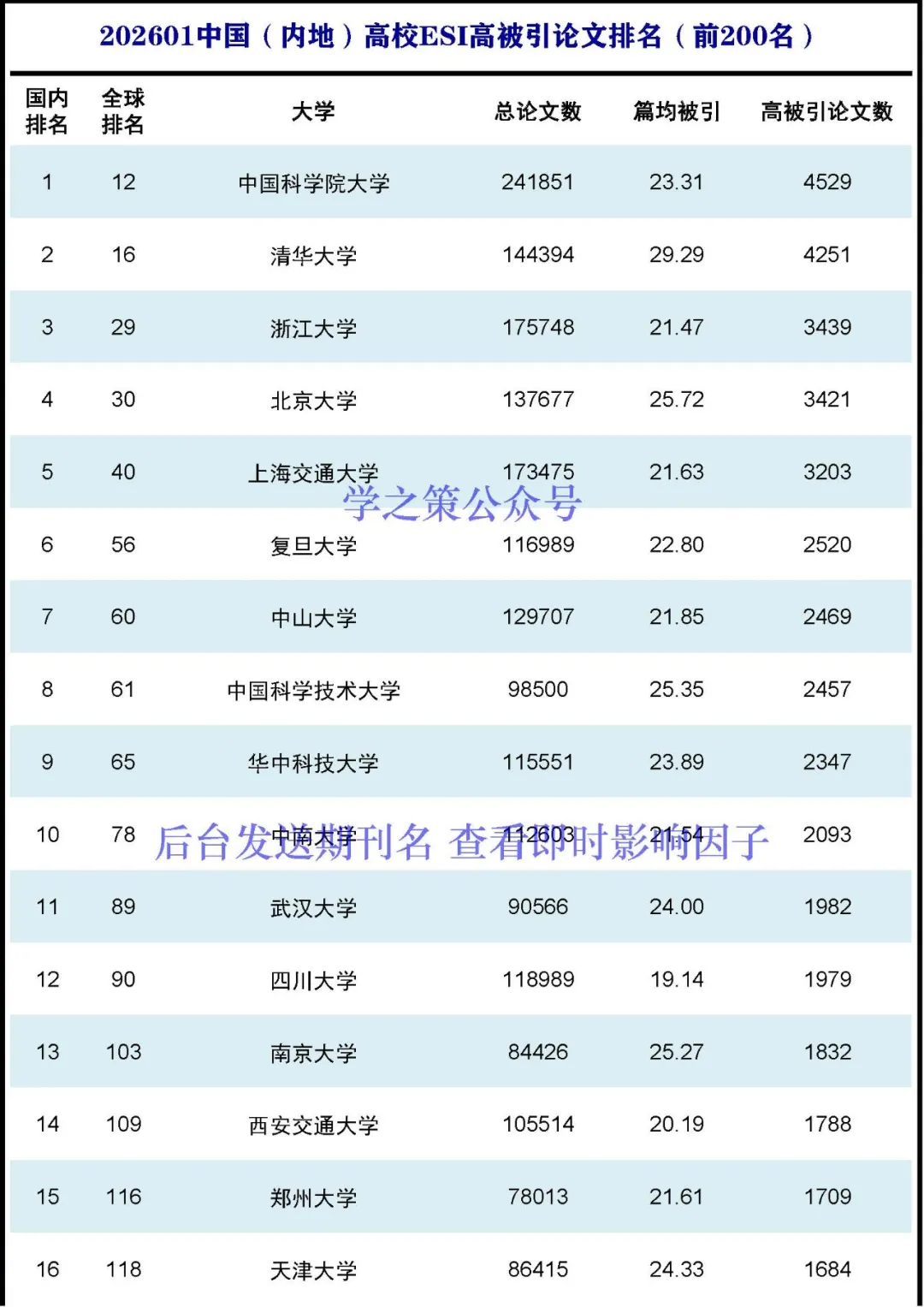 下面是各领域最新阈值。 下图是2025年11月份更新的阈值(两个月更新一次),大家可以对比看看,各个领域在各年度的阈值涨了多少。 最新一期数据发布后,中国内地高校高被引论文数排名情况如下: