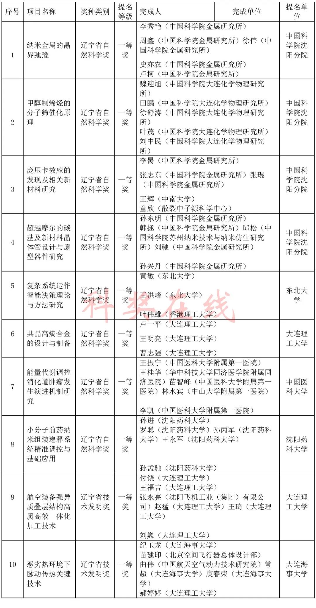 2024年度辽宁省科技奖会评结果公布,一等奖63项