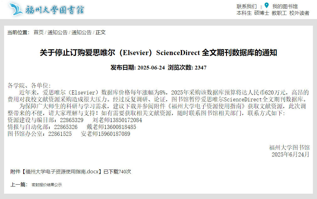 "6 月 24 日,福州大学图书馆发布题为《关于停止订购爱思唯尔(Elsevi..."