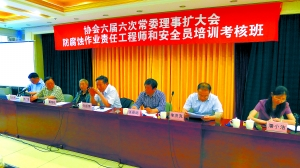 防腐施工安全操作关系到行业的健康发展,图为中国工业防腐蚀技术协会会长任振铎就安全员培训、贯彻行业标准等一系列问题与企业代表互动。 (本报记者 李东周 摄)