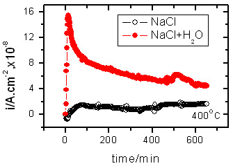 长期服役于海洋环境中的飞机发动机压气机叶片会遭受严重的腐蚀,成为困扰飞机服役安全的难题。金属在该环境中的腐蚀源于中温(500-700℃)固态NaCl和水蒸汽的协同作用,金属腐蚀与防护国家重点实验室王福会研究员从20世纪90年代就在此方向开展了系列的研究工作,指出金属材料在该环境中的腐蚀为化学氧化与电化学反应的协同作用,并提出了“动态水膜理论“。认为由于水蒸汽不断的在基体表面吸附、脱附形成动态水膜,为电化学腐蚀反应的发生提供了条件,金属作为阳极发生溶解,形成水合金属氧化物的疏松氧化膜,并很好地解释了实验现象。他们将电化学测试技术引入到该研究领域,证实了体系中电化学腐蚀历程的存在,验证了动态水膜理论的可靠性,发现虽然电化学腐蚀历程的份额在整个腐蚀历程的所占比例不足5%,但却使材料的总体腐蚀速度提高了4倍以上,腐蚀电化学历程的存在是以催化作用的形式强烈促进了整体腐蚀的发展,大大提高了材料的腐蚀速度。该理论一经提出,就引起国外同行广泛关注。此后李瑛研究小组就中温固态NaCl和水蒸汽环境中金属材料的电化学腐蚀历程开展了研究工作,设计了适合高温高阻环境电化学检测的电极体系,建立了相关的电化学研究方法。博士生刘莉系统研究了纯铁、纯铬在该环境中的腐蚀行为,证实了该体系存在电化学腐蚀机制,并验证了动态水膜理论的可靠性,研究结果发表在Electrochimica Acta,51(2006)4736-4743,成为国际上关于中温固态NaCl和水蒸汽共存环境中金属电化学腐蚀行为的首篇文章。随后博士生汤雁冰对金属在该体系中的腐蚀机制进行了更为深入的探讨,发现总体腐蚀历程实际上是由一个电化学反应历程前置一个化学反应历程(CE)构成,即金属在该体系中首先发生化学氧化,而后诱发电化学反应历程;电化学反应历程的启动促使环境中部分NaCl作为催化剂进一步加速金属的化学氧化,致使虽然在总腐蚀中电化学反应比例不足10%,但却使总反应速度呈数量级的增长,该研究结果已经发表在Electrochemistry Communications,12 (2010) 191–193杂志。目前该课题组还在继续开展相关的研究工作,以保持课题组在此方向在国际上的引领地位。