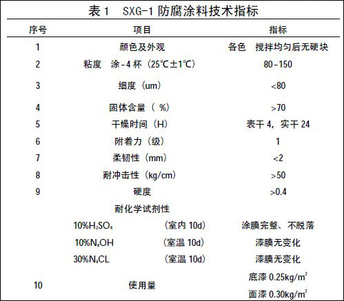 表1SXG-1防腐涂料技术指标