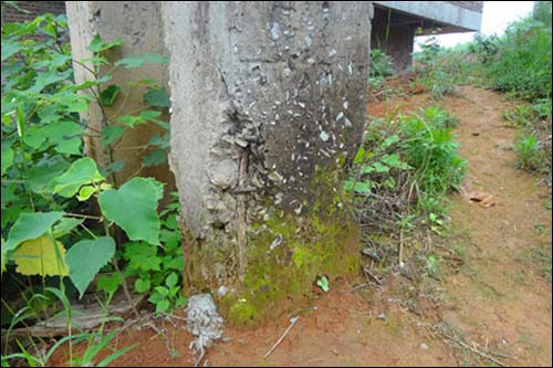 (砼风化、钢筋出露锈蚀严重的排架)