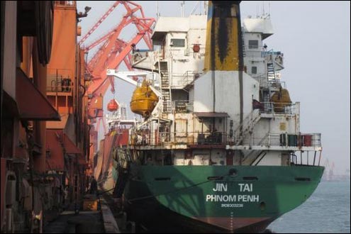 图为被龙口海事局滞留的柬埔寨籍“JIN TAI”轮,目前该轮仍在龙口港纠正缺陷。 胡佩民 摄