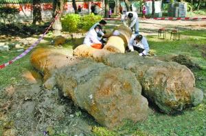 “除锈、脱盐除氯、缓蚀、封护”这四道程序是整个修复保护过程中不可缺少的工序。刚开始,由于技术等的不成熟,保护工程进展得非常缓慢。截至2010年,近2年时间里,只对12门体量较小的古铁炮进行了保护举措。
