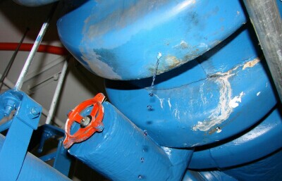 如果吕或乙烯基外层覆盖在管道表面,而保温层安装不当或厚度不够,那么逐渐积累的水滴就会隐藏在管道上,致使数年间发生更多的损坏。很多情况下,在槽管或夹管在使用过程中,水珠积聚在管道的乙烯基弯头、T形或其他装置处,使整个管道系统最为薄弱的环节即连接处螺栓受到严重的腐蚀破坏从而导致毁灭性的腐蚀失效。