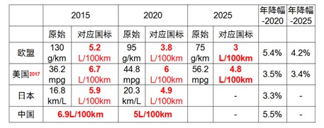 上表是工信部官网公布的主要国家和地区燃料消耗量标准目标对比。非常明显,几个主要大国都对汽车的油耗都有了一个明确的限制规定。