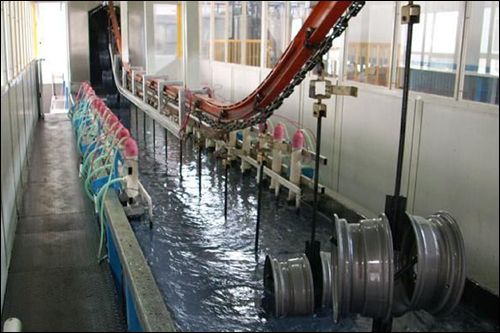 (7)电泳涂装法适用于大量流水线的生产工艺。电泳槽液的更新周期应在3个月以内。以一个年产30万份钢圈的电泳生产线为例,对槽液的科学管理极为重要,对槽液的各种参数定期进行检测,并根据检测结果对槽液进行调整和更换。一般按如下频率测量槽液的参数: