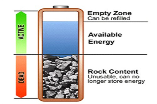 电池的能量存储可以分为三个虚拟区域,即可填充的空白区、提供能量的可用区以及由于使用和老化作用造成的闲置不可用区域,或者说是岩石区,如图1所示。