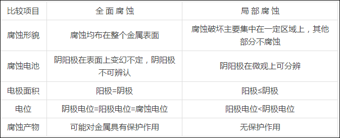 全面腐蚀与局部腐蚀基本特征比较