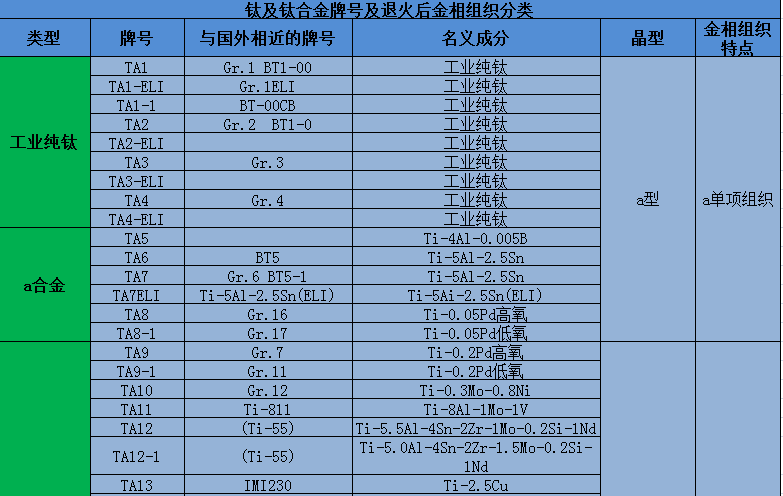 钛属于多晶型金属,在低于882℃为a晶型,原子结构呈密排六方晶格,从882℃至熔点都是B晶型,呈体心立方晶格。工业纯钛在金相组织上呈现a相,如果退火完全的话,是大小基本相等等轴状单项晶格。由于存在着杂质,所以工业纯钛中也存在着少量的B相。基本上是沿着晶界分布。