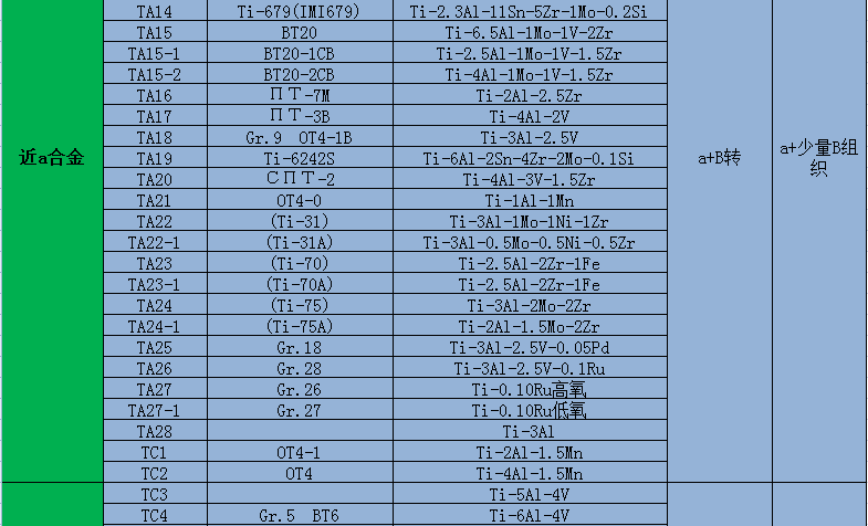 钛合金的分类据资料介绍,有多种分类法,比较常见的是以退火后的金相组织形态进行分类: