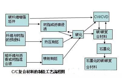 C/C复合材料的制造工艺有很多,主要包括坯体的预成型坯体、浸渍、碳化、致密化、石墨化合抗氧化涂层等工艺。