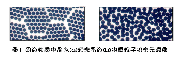 首先,我们聊一聊什么是晶体、什么是非晶。简单来说,评判晶体非晶体的标准是微观组成粒子的排列是否具有长程有序和平移对称性。如果有,如图1(a),则是晶体,反之,则如图1(b)非晶。
