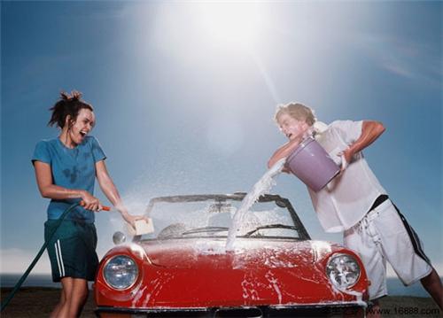 很多车主喜欢在烈日下洗车,认为这样洗后很快就能将车身上的水晒干。其实不然,在烈日下洗车,水滴所形成的凸透镜效果会使车漆的最上层产生局部高温现象,时间久了,车漆便会失去光泽。若是在此时打蜡,也容易造成车身色泽不均匀。所以,洗车打蜡最好是在有遮蔽的条件下进行,如果无法保证,则最好选在阴天或是晴天的早晨、傍晚时分进行。