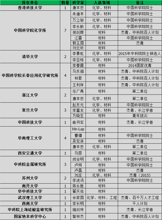 新出炉!2015年全球高被引科学家名单里中国材料领域都有谁?